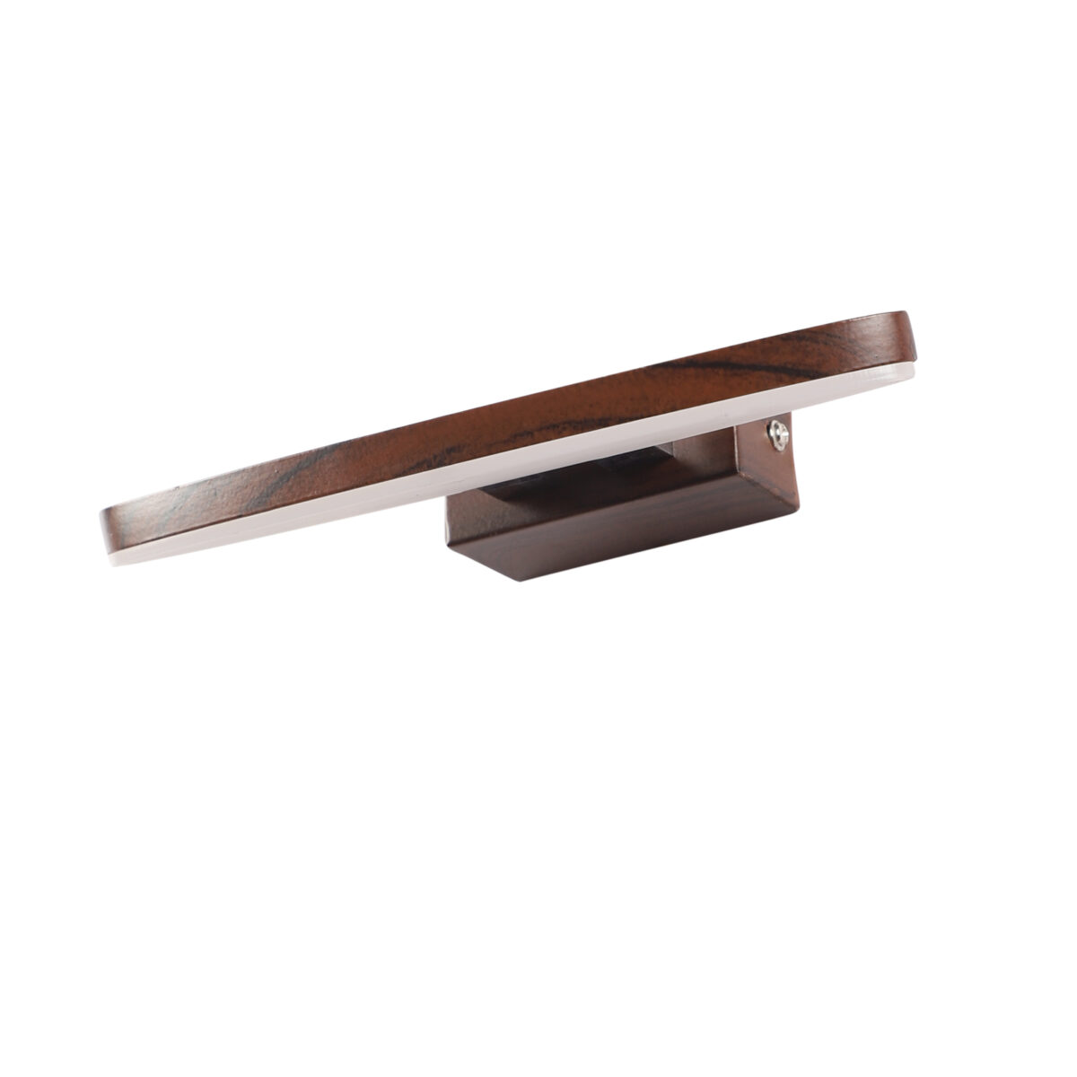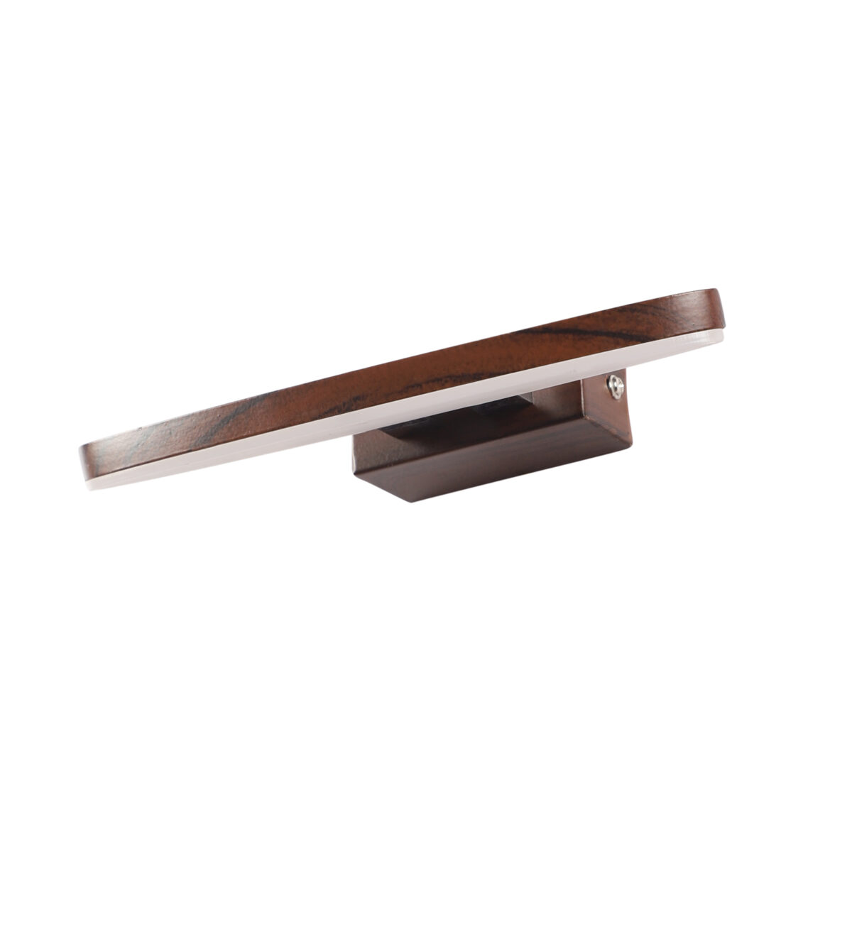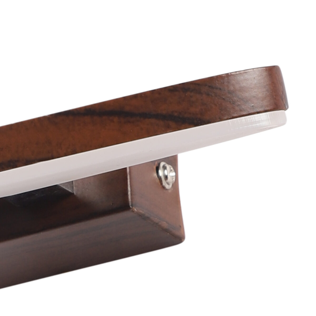 Exclusive dark brown (wood finish) LED picture light using high quality LED and driver with high success rate having less than 0.5% replacement with warm white (yellow) light output. It features one adjustible point. It is usually placed over the painting or a photo frame on the wall. Can also be used above the mirror. Its premium quality wood finish makes it one of the best selling product in our catalogue. It can be made in silver, antique, copper, and black finish in case of bulk requirement. Available in small size with code ML379-S.