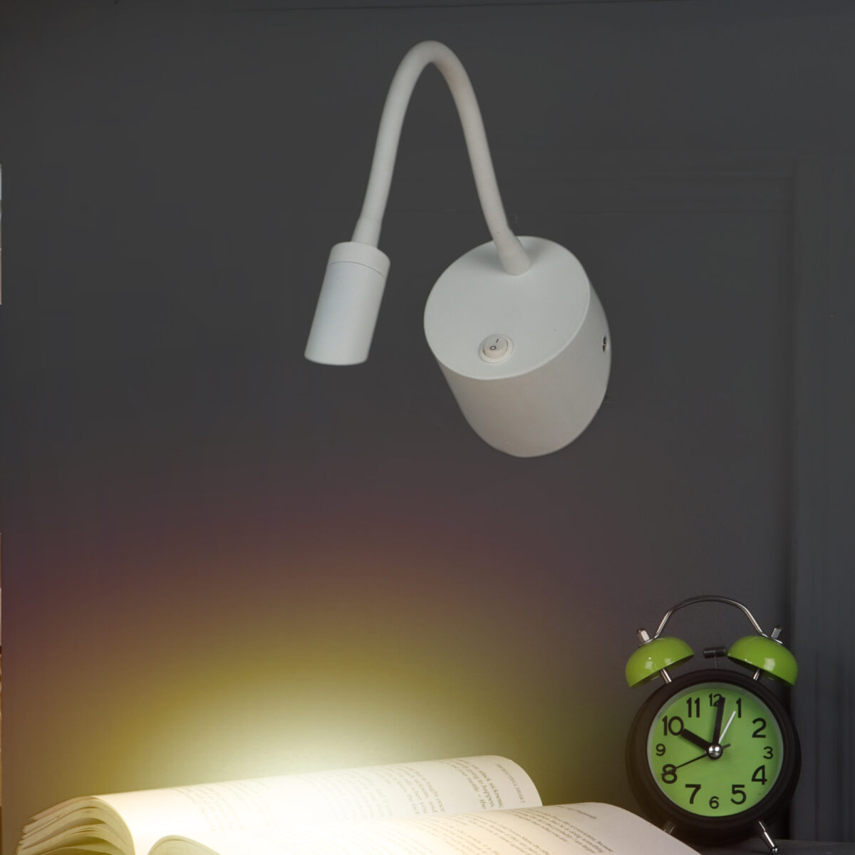 LEARC Led Lighting power coated white finish Bed Side Light Switched warm white yellow X2018-WW