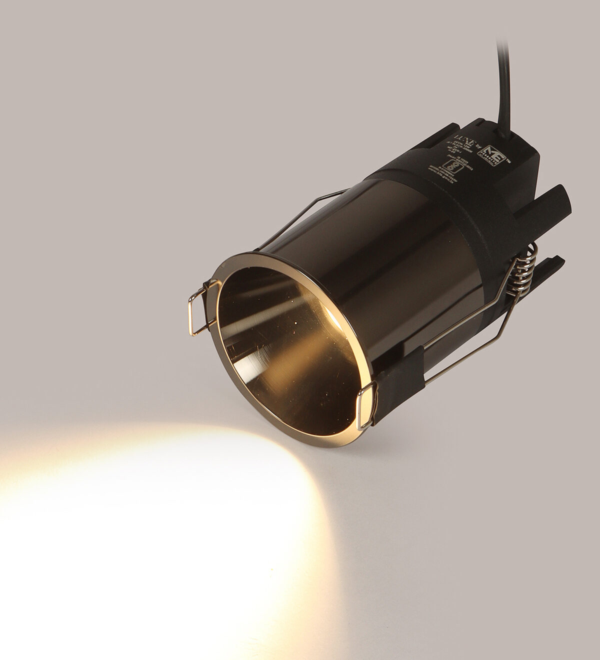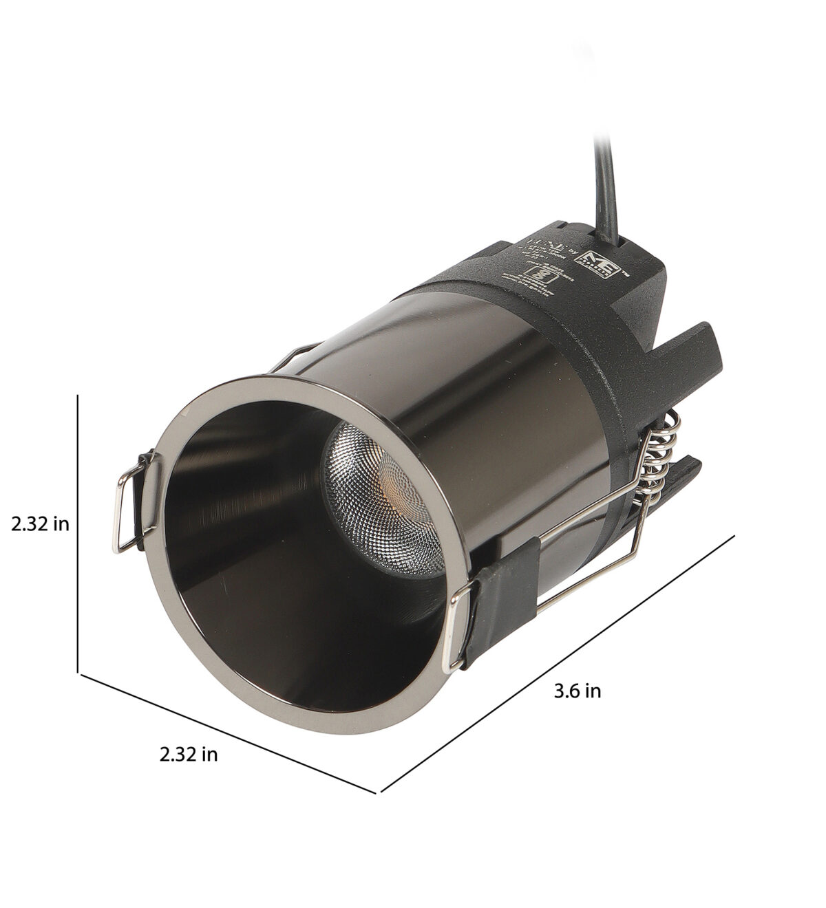 Premium aluminium die cast electroplated jet black finish 12 watt LED light with Bridgelux COB and high quality LED driver. Used in ultra modern spaces.