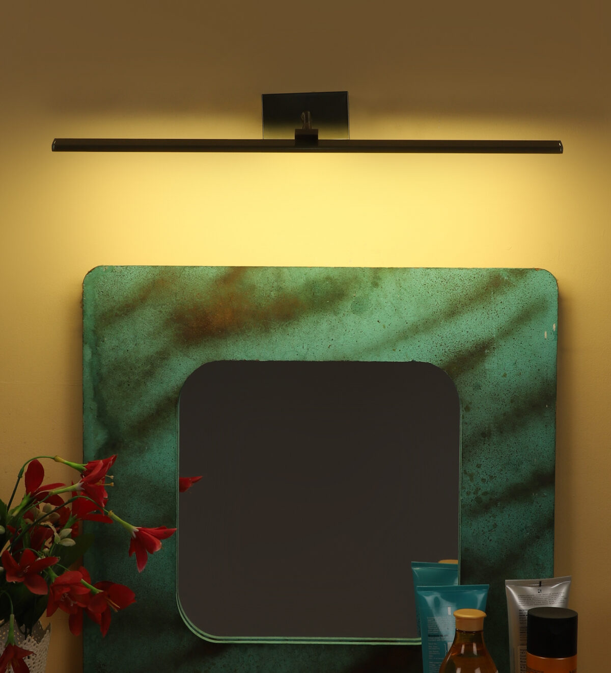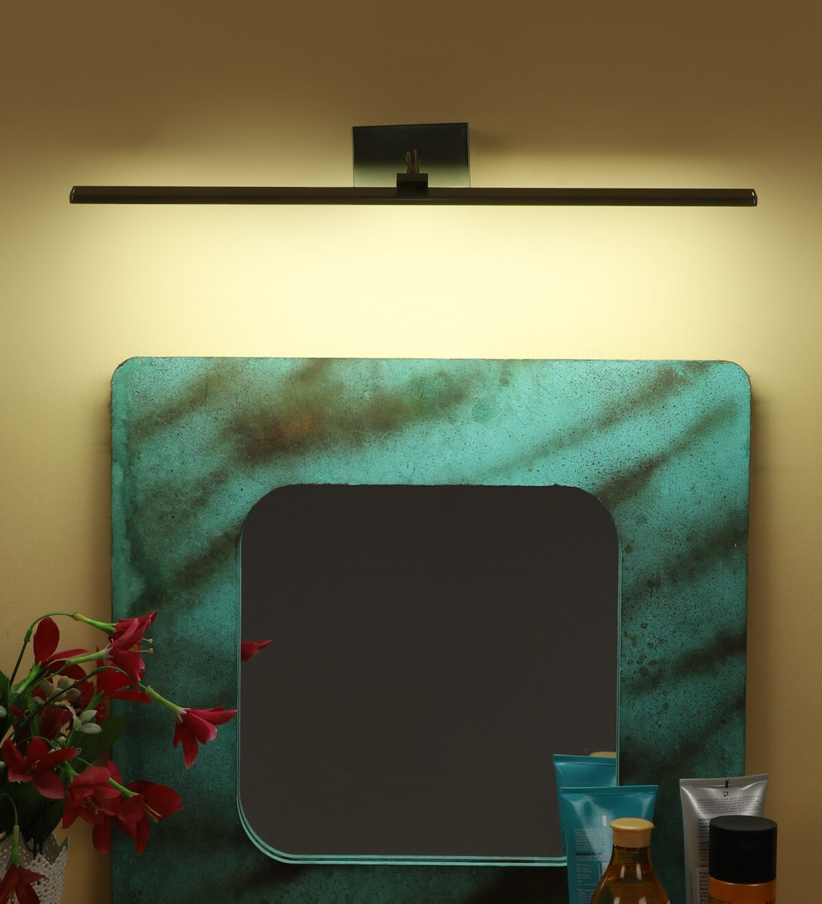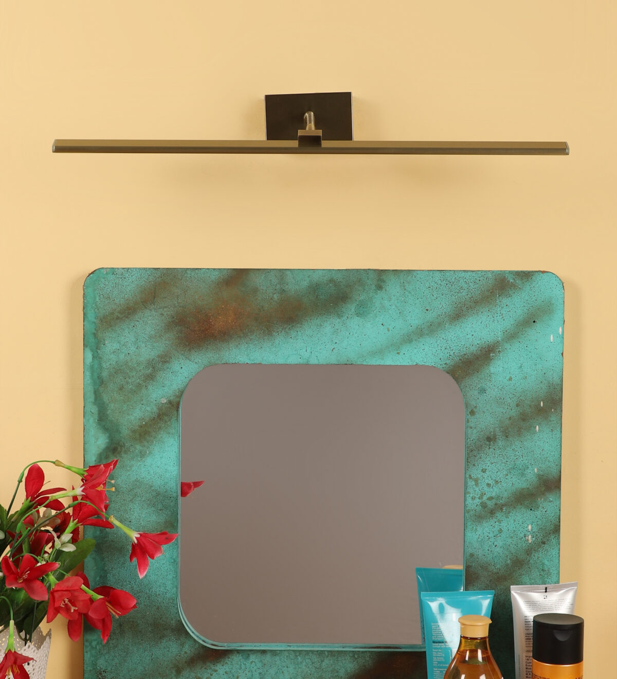 Antique brass finish tricolour LED picture light using high quality LED and driver with high success rate having less than 0.5% replacement. It features one adjustible point. Can be positioned at all angles wherever required. Its sleek design is preffred by lot of customers. It is usually placed over the painting or a photo frame on the wall. Can also be used above the mirror. It is also available in small size with codes ML398-S.