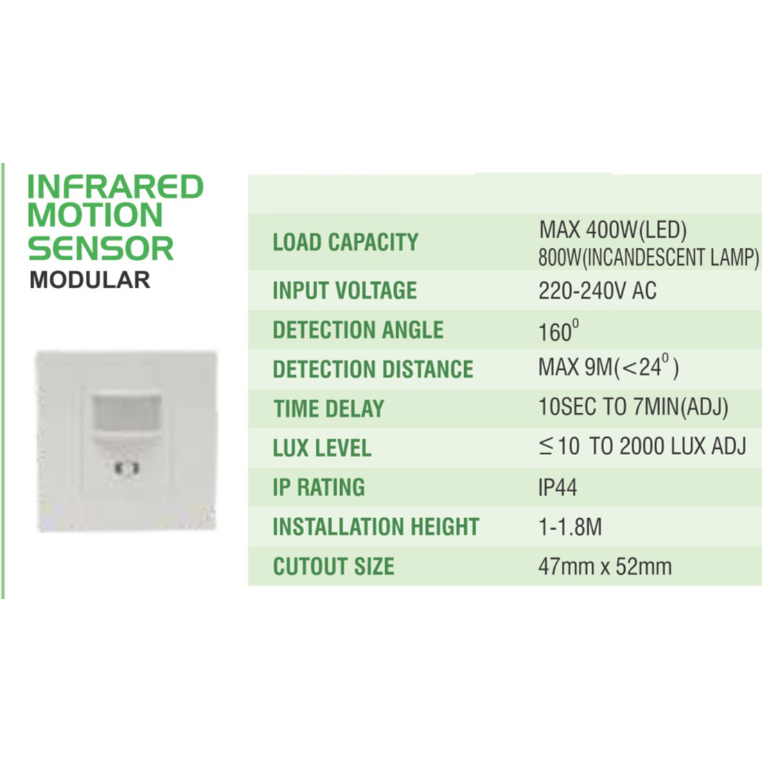 LEARC PIR motion sensor modular with distance time and Lux adjustment.