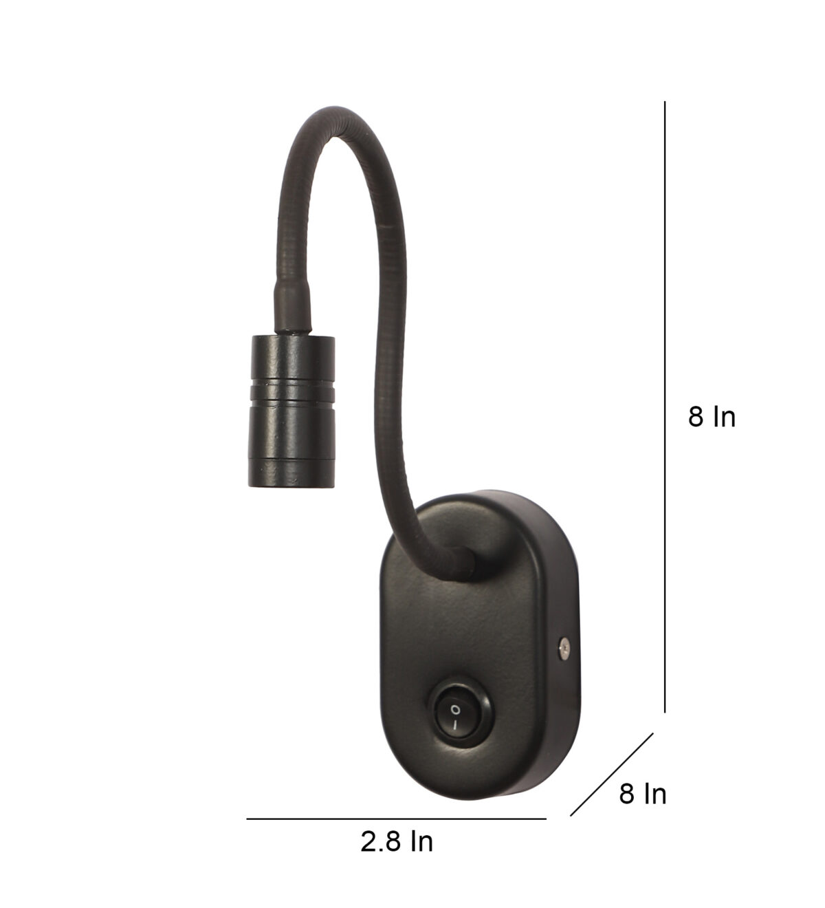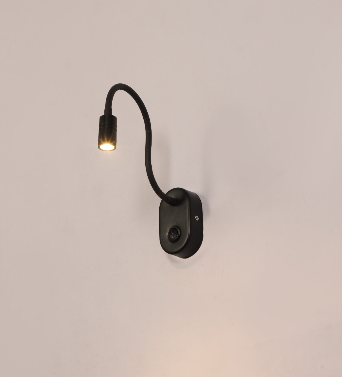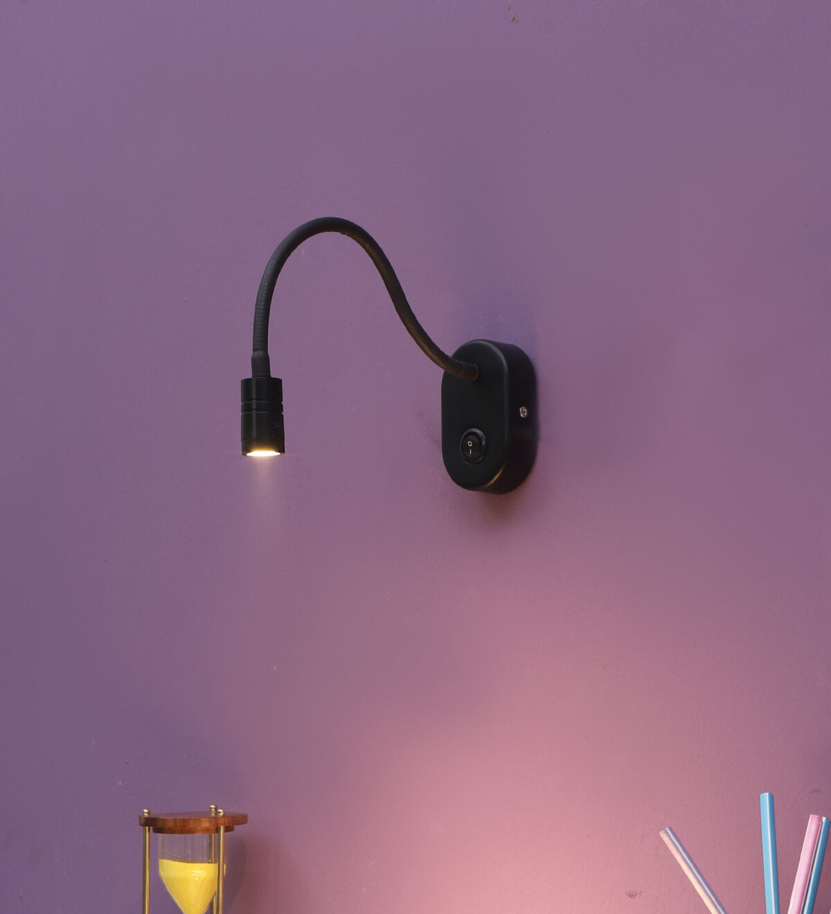 Black sleek, economical, aluminium, mild steel adjustable bed side spot light. It is one of the best selling product. Ideal to install on the side of the bed at a low height. This highlights a small area giving yellow light output , which can be adjusted by rotating the pipe in any required direction. The sleep of the other person is not disturbed while using this light since the area highlighted is limited. It can also be used as a spot light or a picture light to enhance the look of any object.