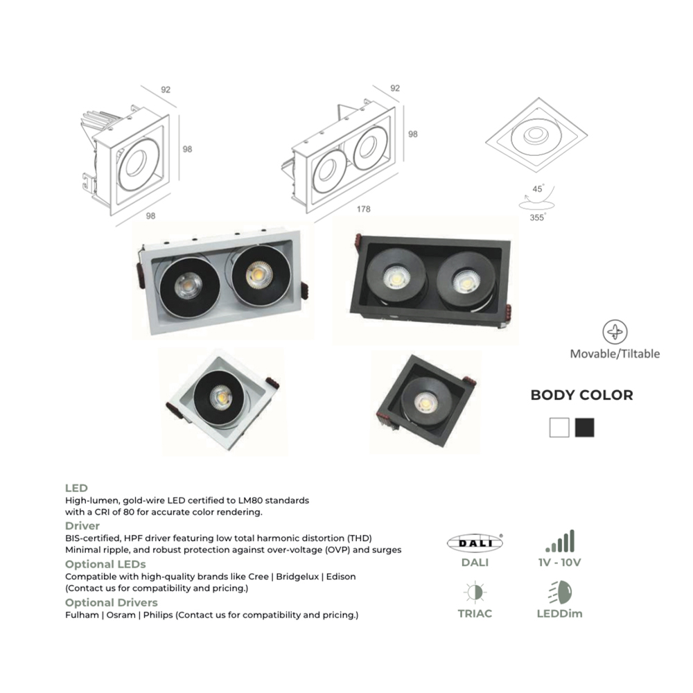 Be the first to review “LEARC premium 2X12 watt movable and tiltable LED down light white finish with top branded LED and Driver EP7102”