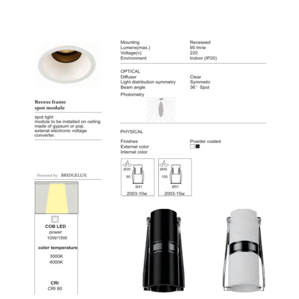 LEARC ultra thin high wattage 2 inch 15 watt black finish extra bright recessed light X2050