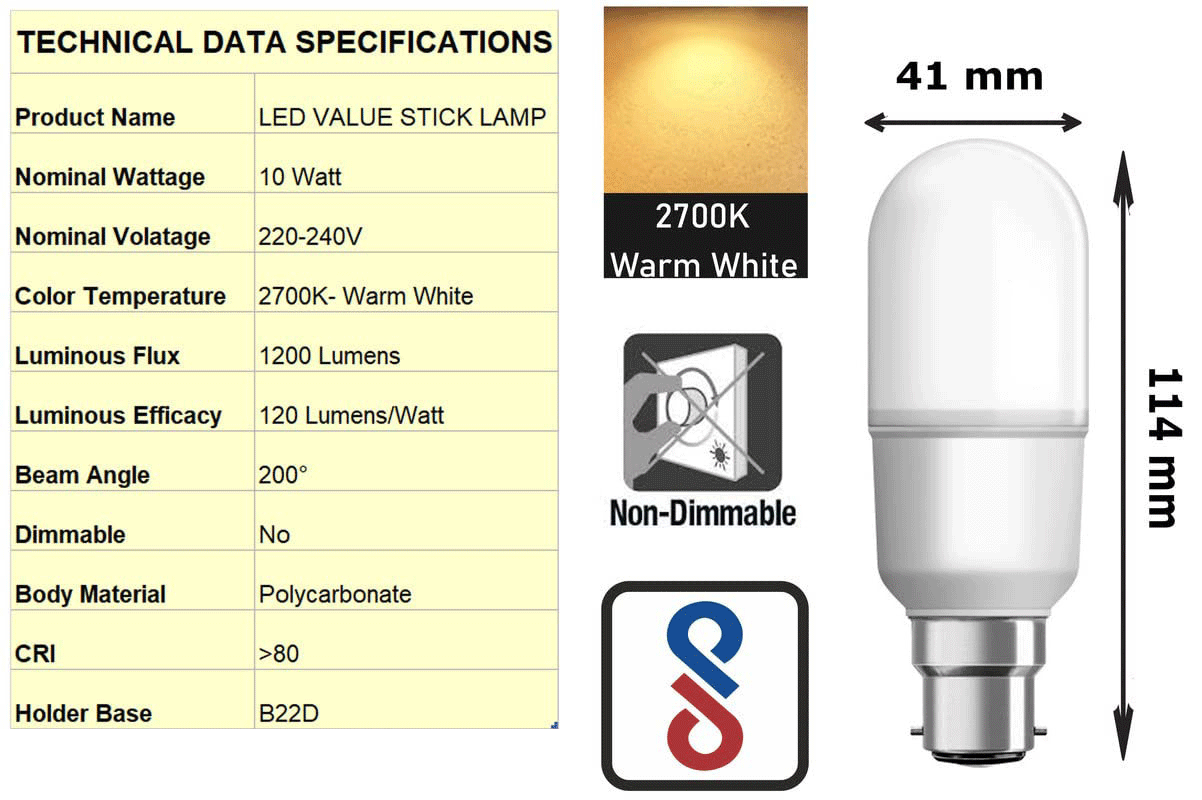 OSRAM LEDVANCE LED VALUE STICK 10W E27 CANDLE LAMP COOL DAY LIGHT WHITE 6500K LA1027 OSRAM LEDVANCE LED VALUE STICK 10W E27 CANDLE LAMP COOL DAY LIGHT WHITE 6500K LA1027 Original price was: ₹350.Current price is: ₹225. Inc. GST