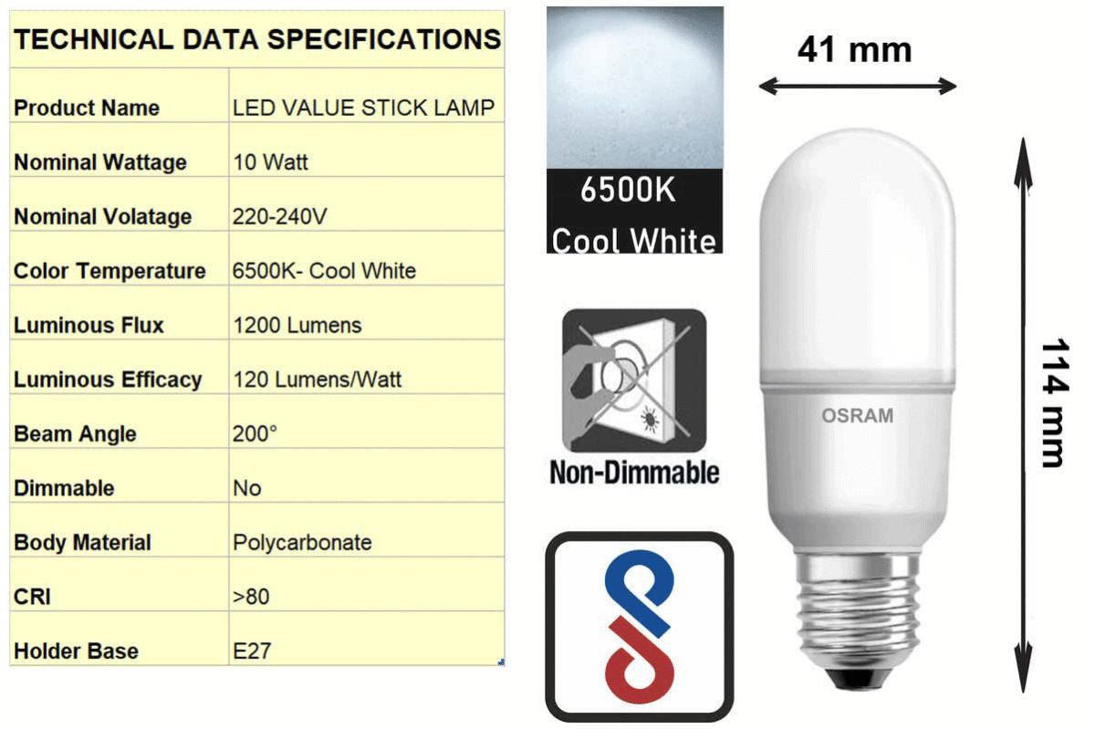 OSRAM LEDVANCE LED VALUE STICK 10W E27 CANDLE LAMP NEUTRAL WHITE 4000K OSRAM LEDVANCE LED VALUE STICK 10W E27 CANDLE LAMP NEUTRAL WHITE 4000K Original price was: ₹350.Current price is: ₹285. Inc. GST