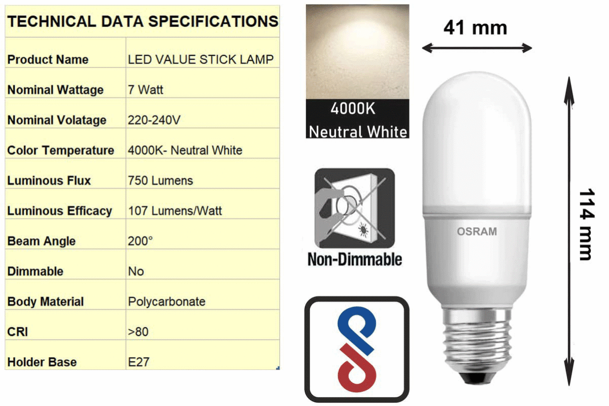 OSRAM LEDVANCE LED VALUE STICK 7W E27 CANDLE LAMP COOL DAY LIGHT WHITE 6500K LA1021 OSRAM LEDVANCE LED VALUE STICK 7W E27 CANDLE LAMP COOL DAY LIGHT WHITE 6500K LA1021 Original price was: ₹275.Current price is: ₹185. Inc. GST