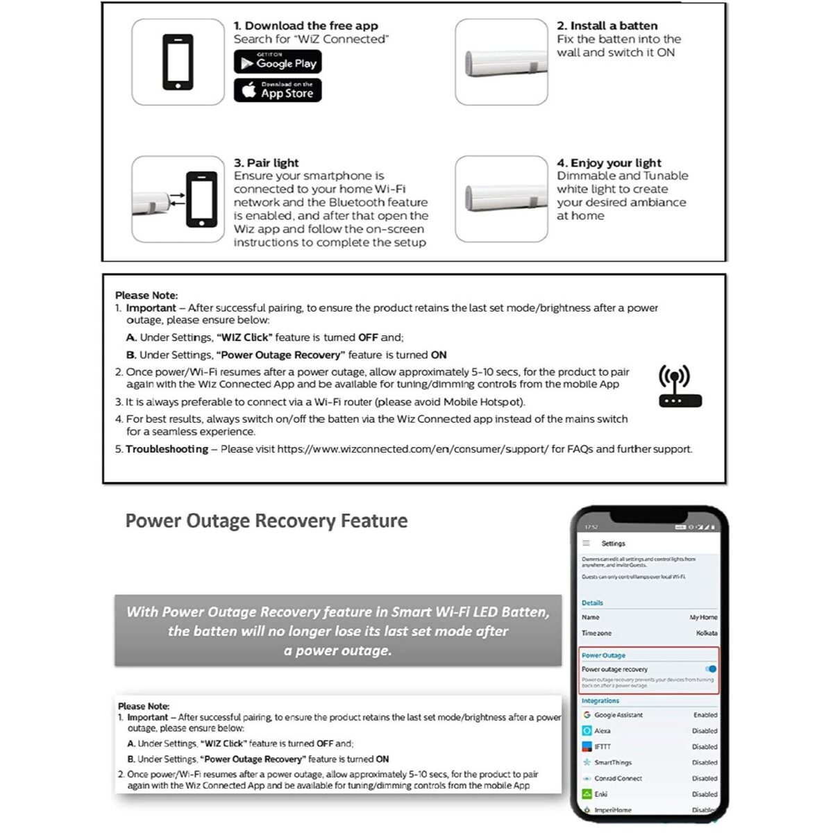 • Wiz app / Google home / Alexa / Apple Siri Shortcut.