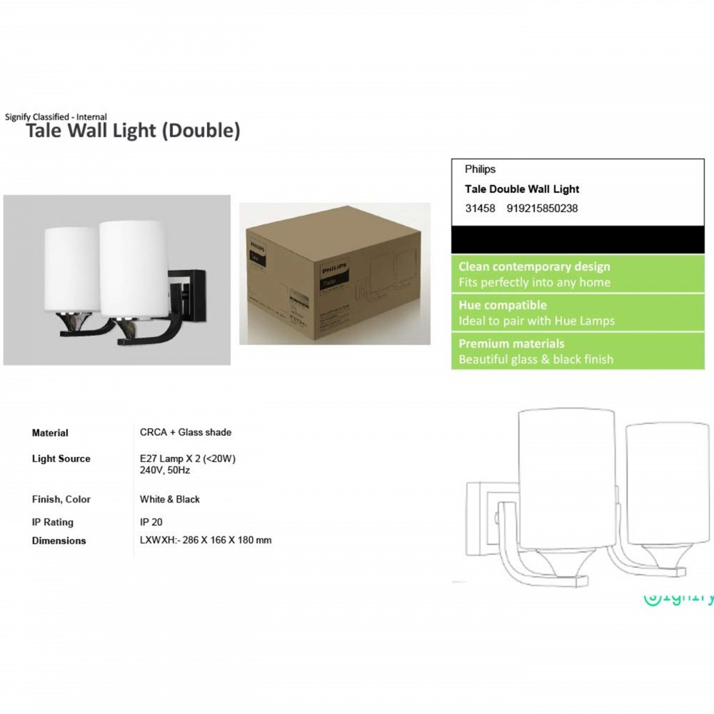 PHILIPS 31458 TALE 2 HEAD WALL LIGHT PH1341