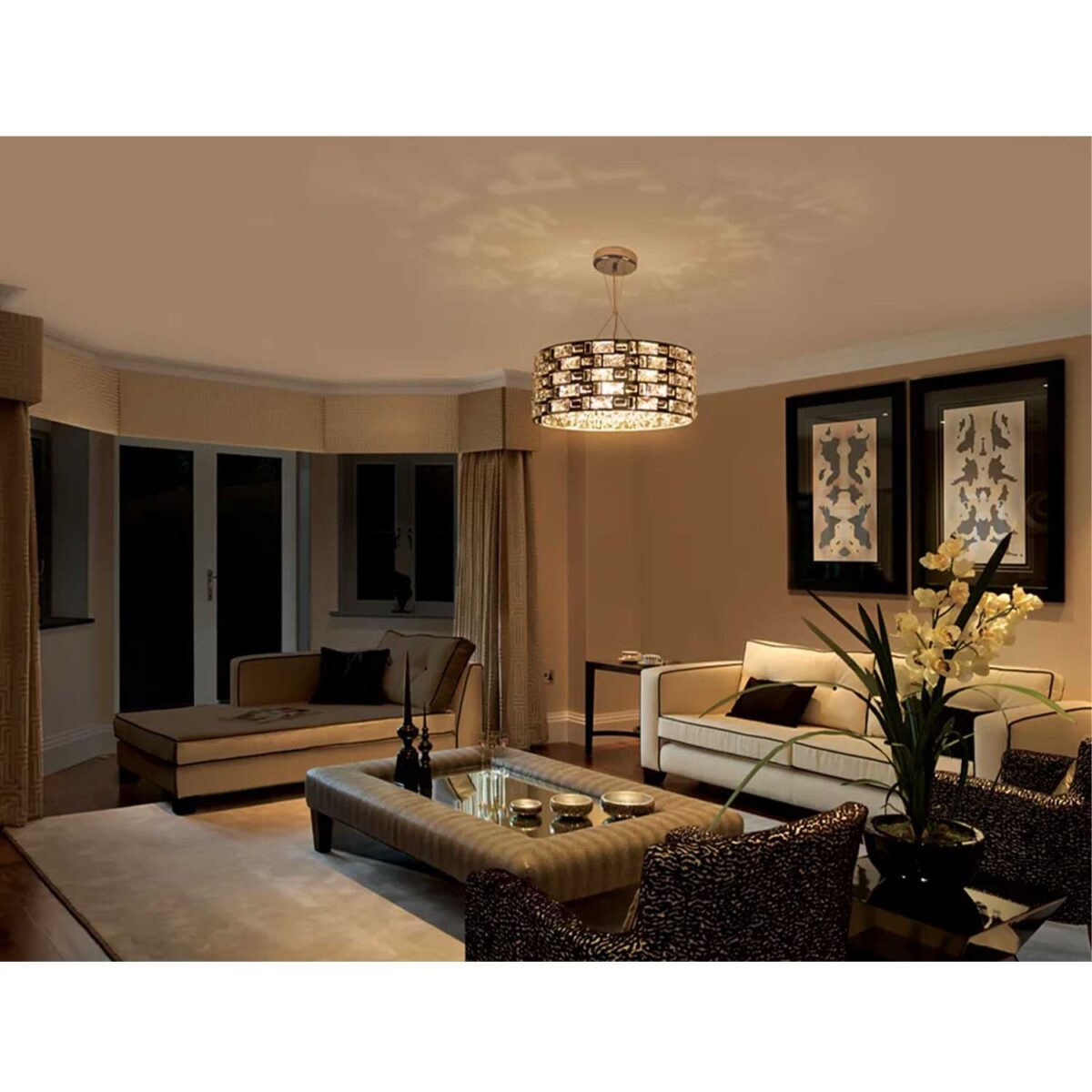 Premium crystals for sparkling light. Premium aesthetic elegant stainless steel finish.