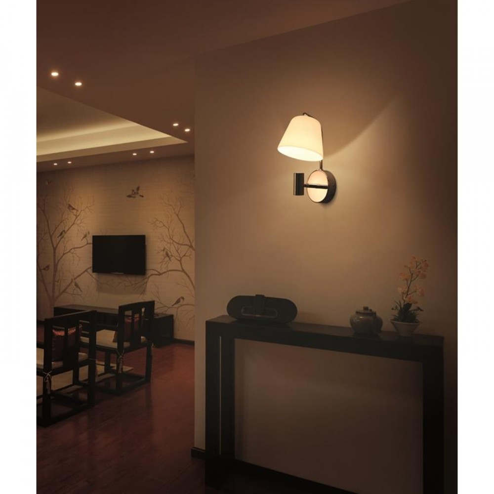 Roman wall light lends uniqueness to your decor through its special design. The lamp shade gets illuminated by the cylindrical light source below. This light source is adjustable and can be pointed away from the lamp shade to achieve a focused light source as well.