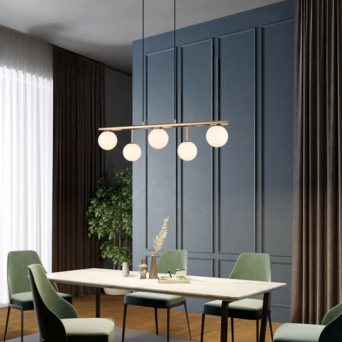 Elevate your decor Stellar series of fixtures, with their contemporary designs, are a perfect way to bring about harmony between the décor and the light fixtures of your house. This particular fixture comes with 5 matte white opal glasses, which will ooze out style when lit, and be a style statement on its own when not lit up.