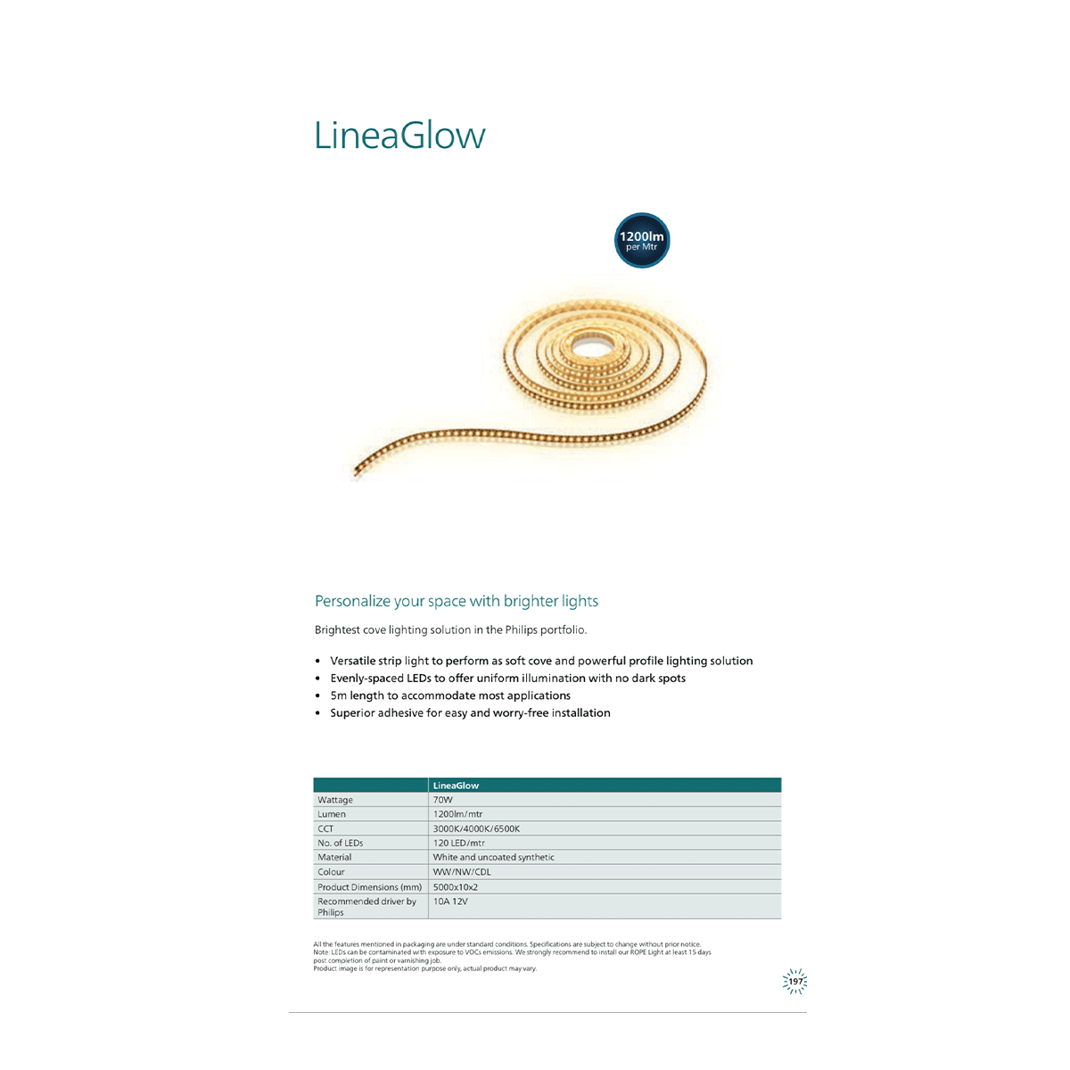 PHILIPS LINEA GLOW LED STRIP 120 LED 14W 1200 LUMEN PER METER 3K WITHOUT DRIVER.