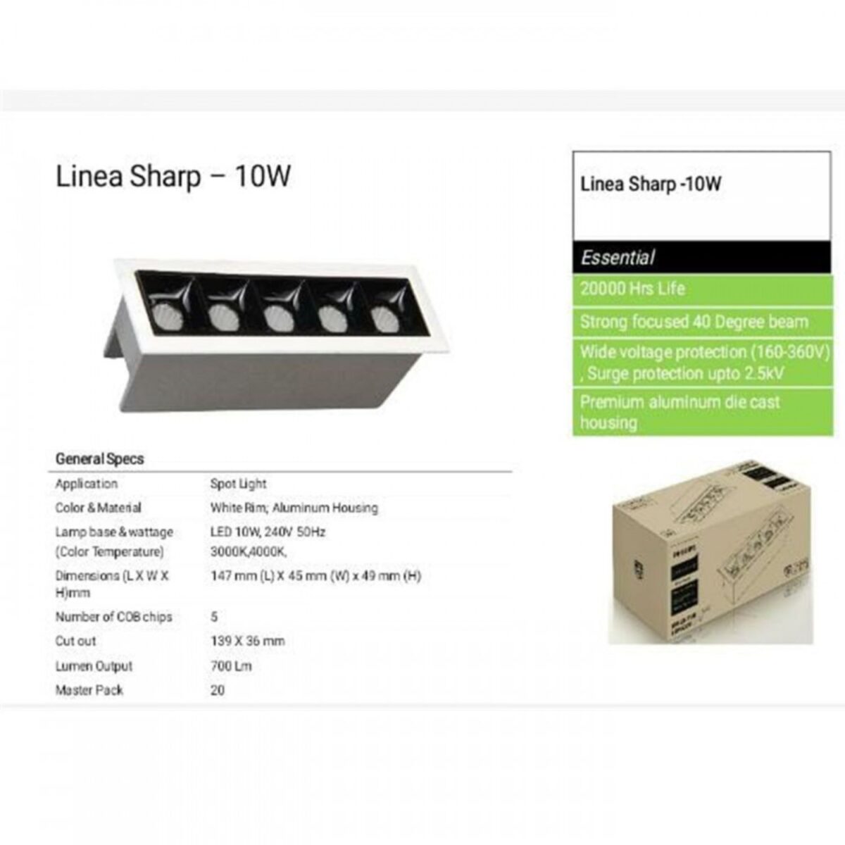 Strong Focused 40 Degree Beam – The beam angle of 40 degrees is the standard beam angle. It is a medium spread beam that can provide a great combination of coverage and intensity.