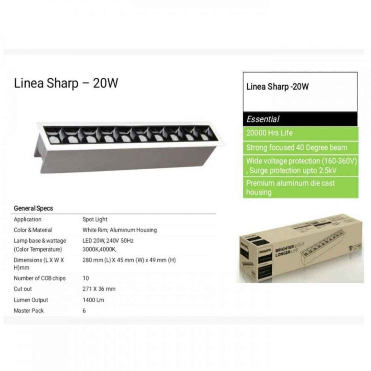 Strong Focused 40 Degree Beam – The beam angle of 40 degrees is the standard beam angle. It is a medium spread beam that can provide a great combination of coverage and intensity.
