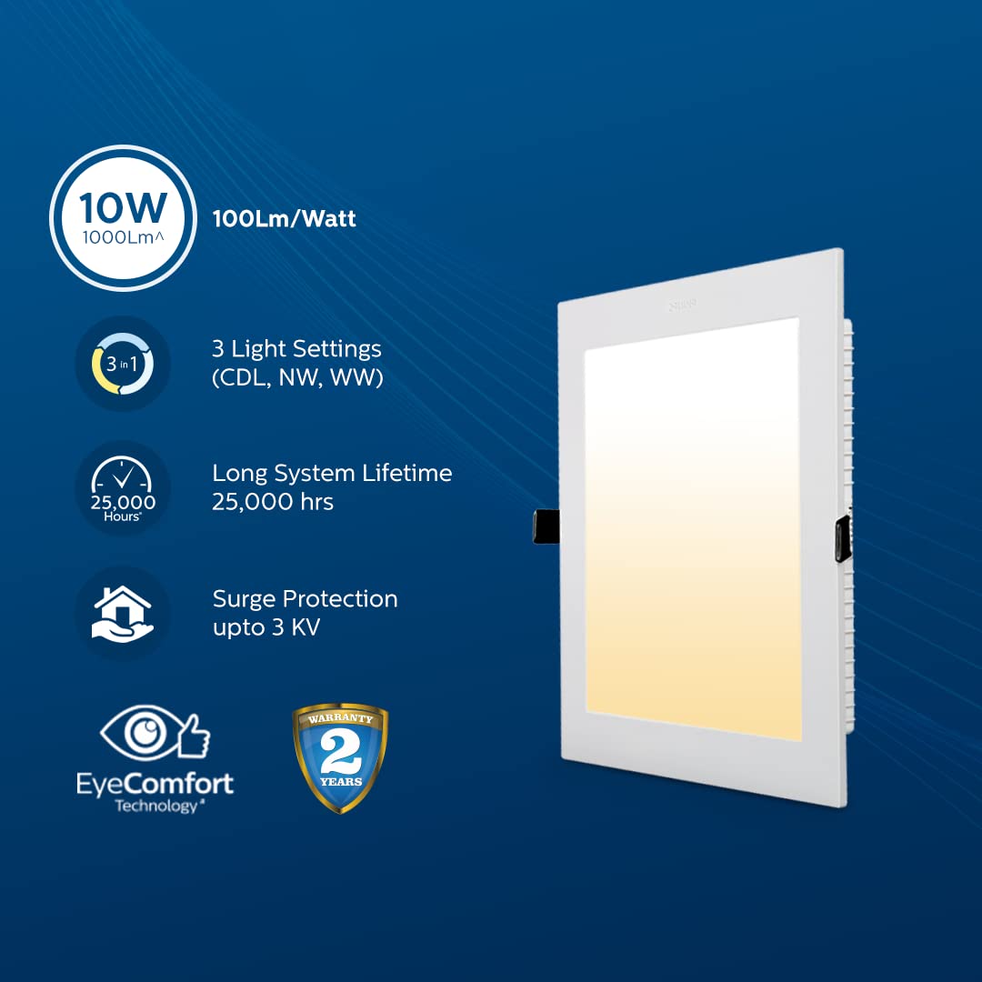 PHILIPS ULTRA GLOW 10 WATT LED RECESSED DOWNLIGHT SQUARE MULTICOLOUR 3 IN 1 PH1418