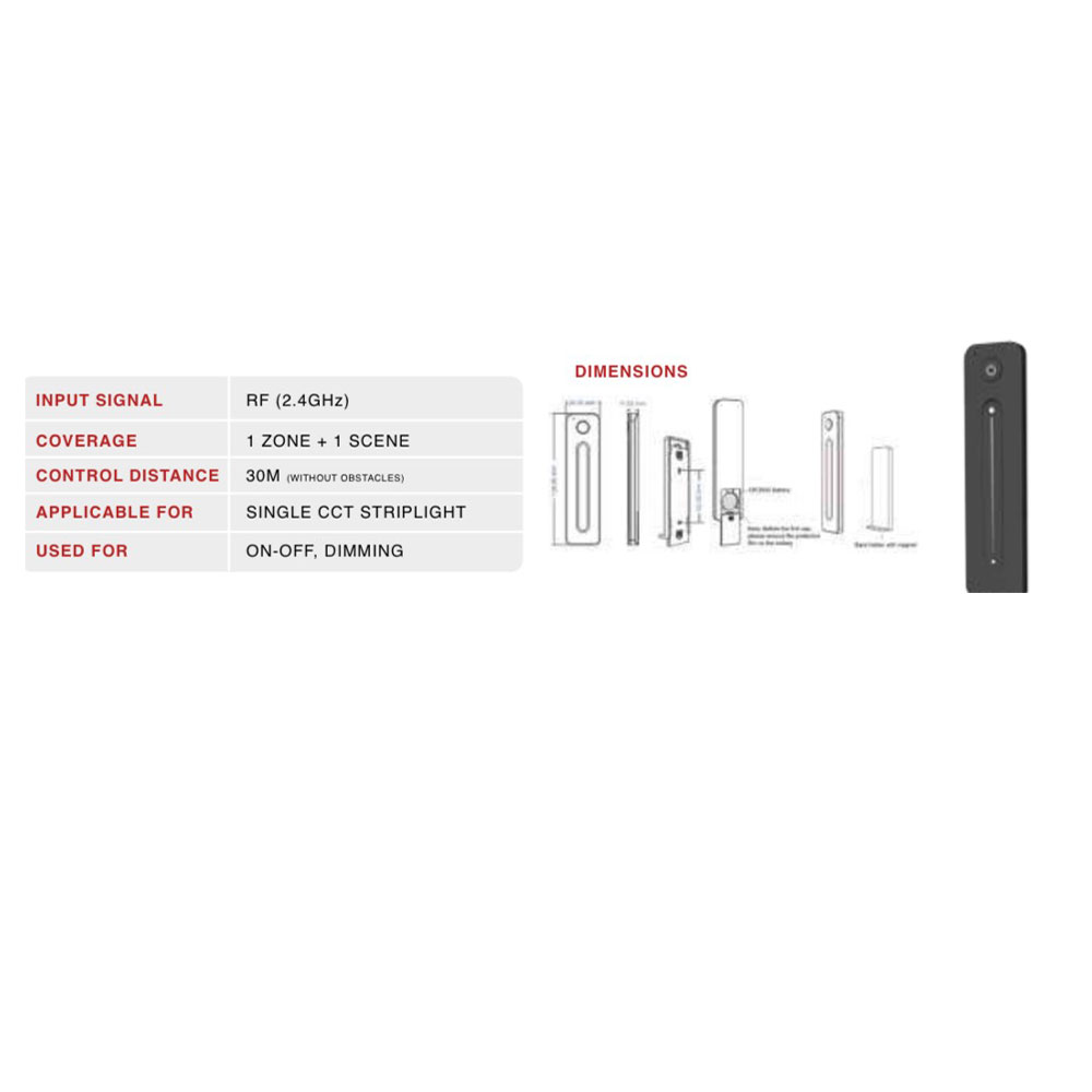 RF controller for 1 channel single CCT strip light used for on off and dimming operation MEM220
