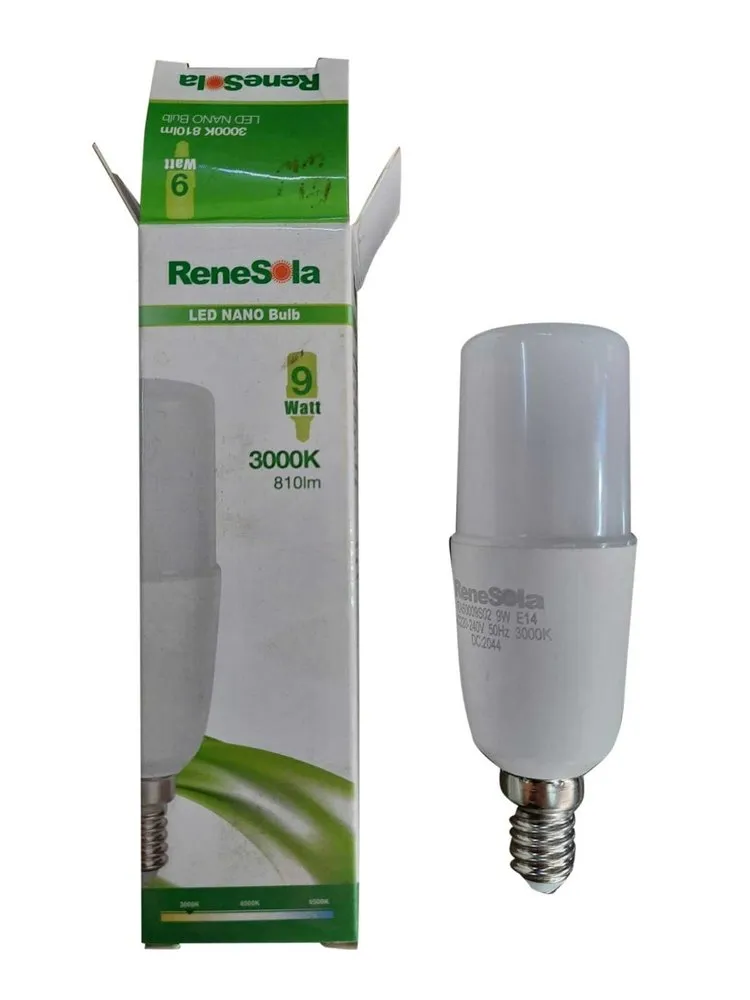 RENESOLA LED NANO BULB E14 9W WARM WHITE YELLOW 3000K RN1001 RENESOLA LED NANO BULB E14 9W WARM WHITE YELLOW 3000K RN1001 Original price was: ₹275.Current price is: ₹201. Inc. GST