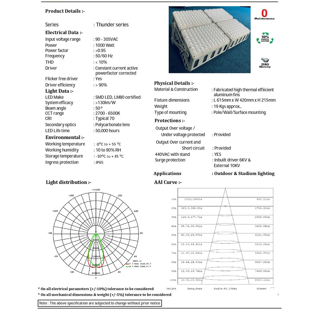 SUPERSCAPE 1000 watt Stadium light with top quality LED and driver with five years warranty.