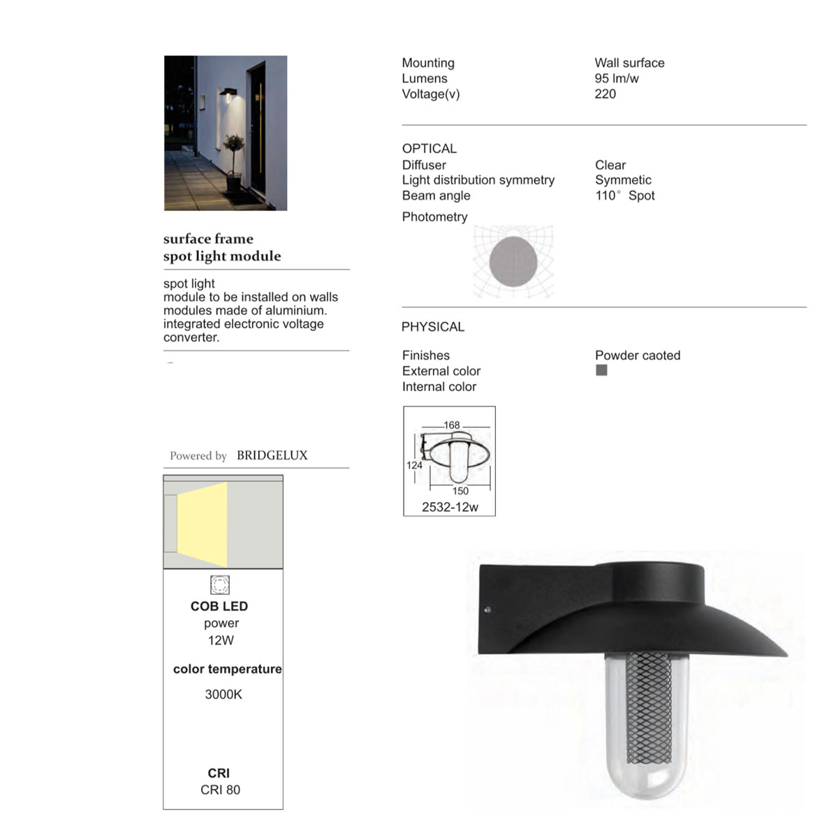 | Beam Angle | 110 degree spot |