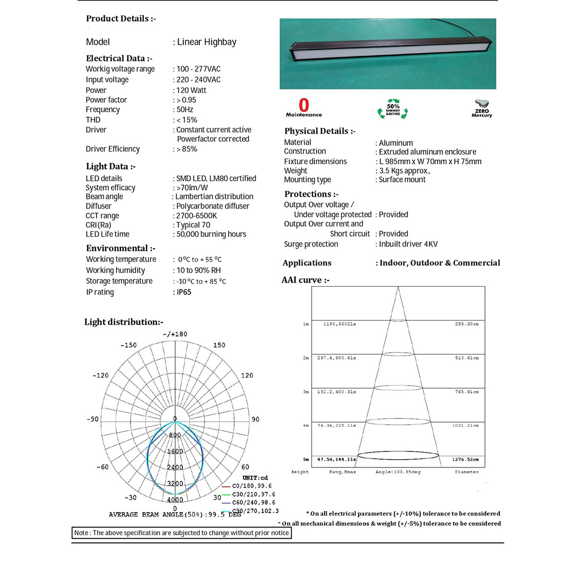 SUPERSCAPE 120 watt 39 inch Linear High bay light with acrylic diffuser.