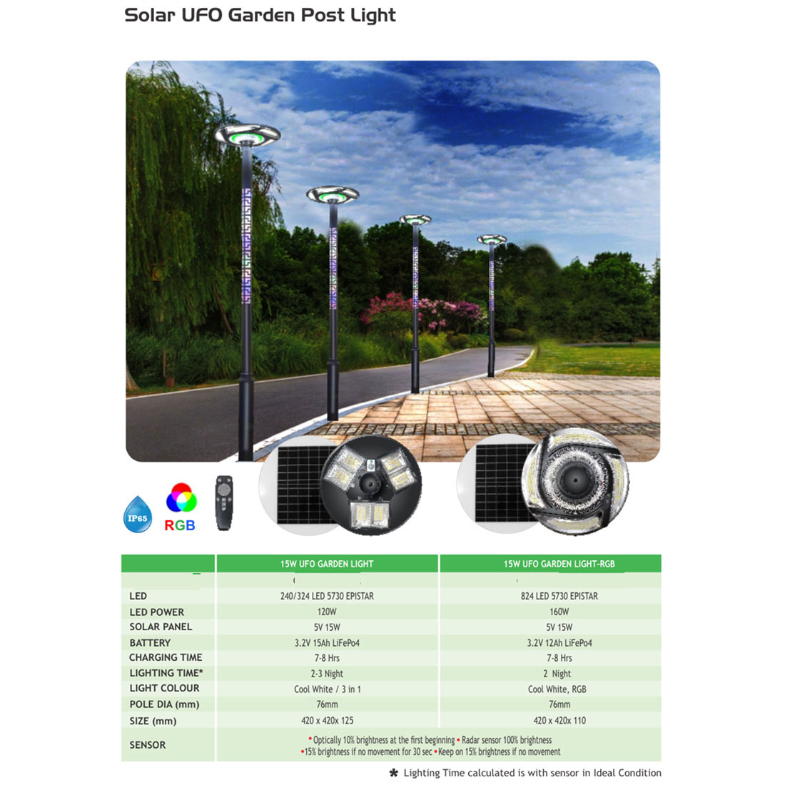 SUPERSCAPE 15 watt solar UFO garden post light Cool white + RGB.