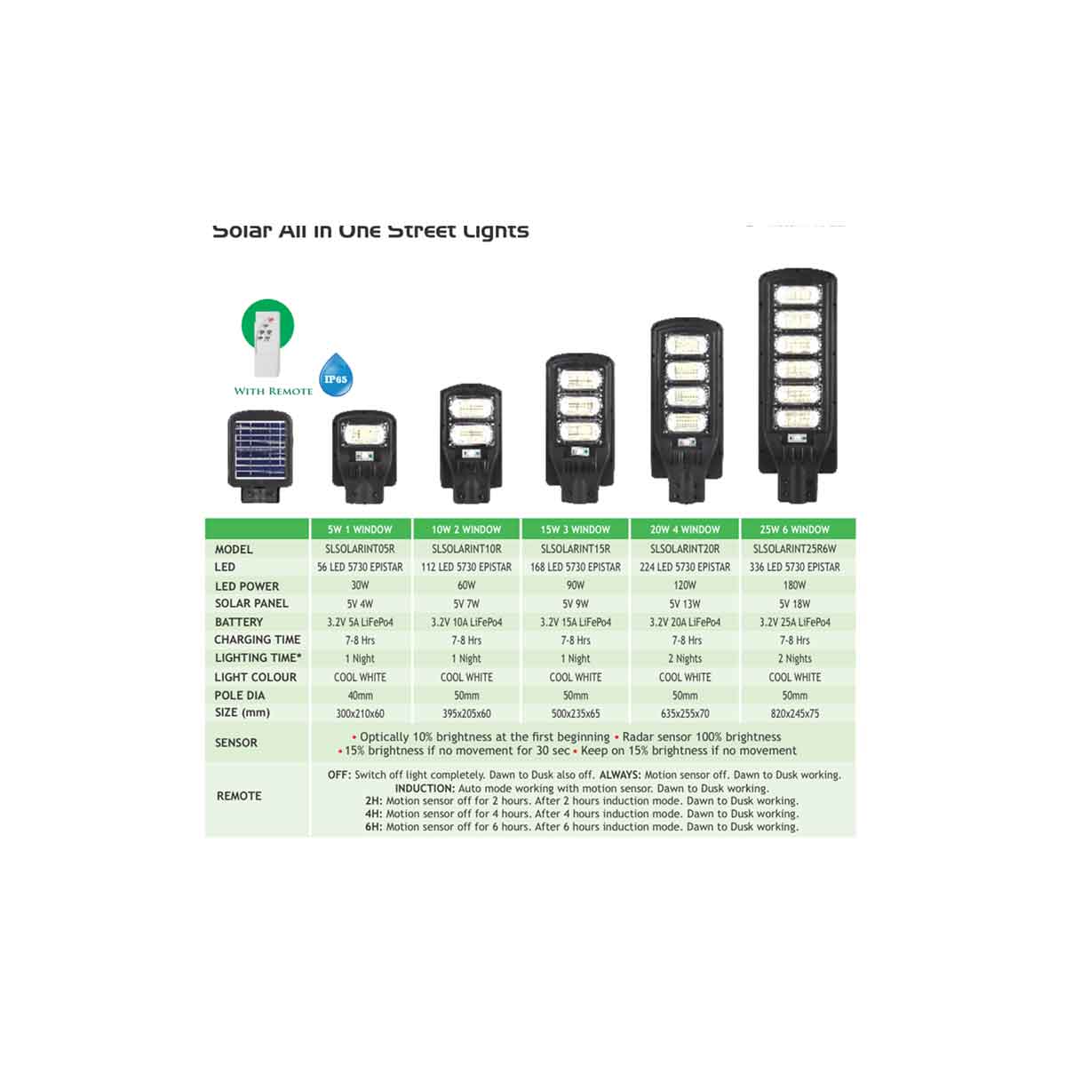 Superscape 25 watt IP65 integrated solar street light all in one six window with remote GS1436