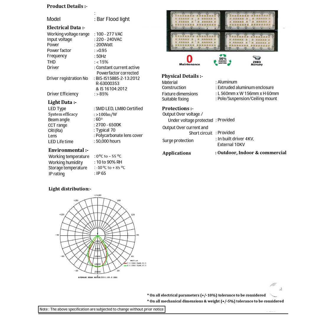 | Lamp Type | SMD LED LM80 certified |