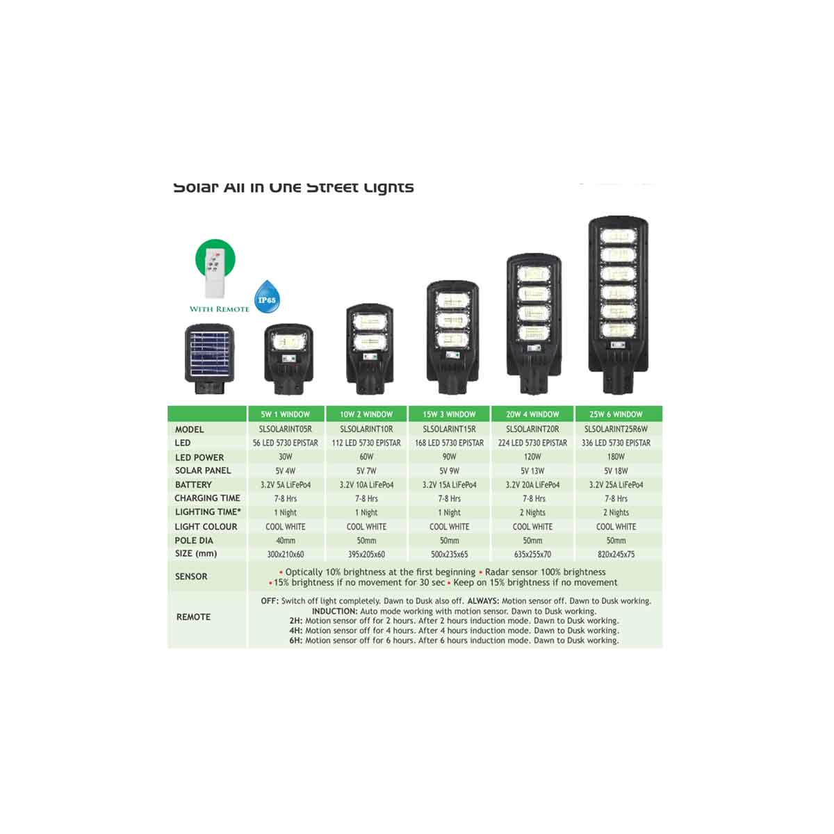 Superscape 25 watt IP65 integrated solar street light all in one six window with remote.