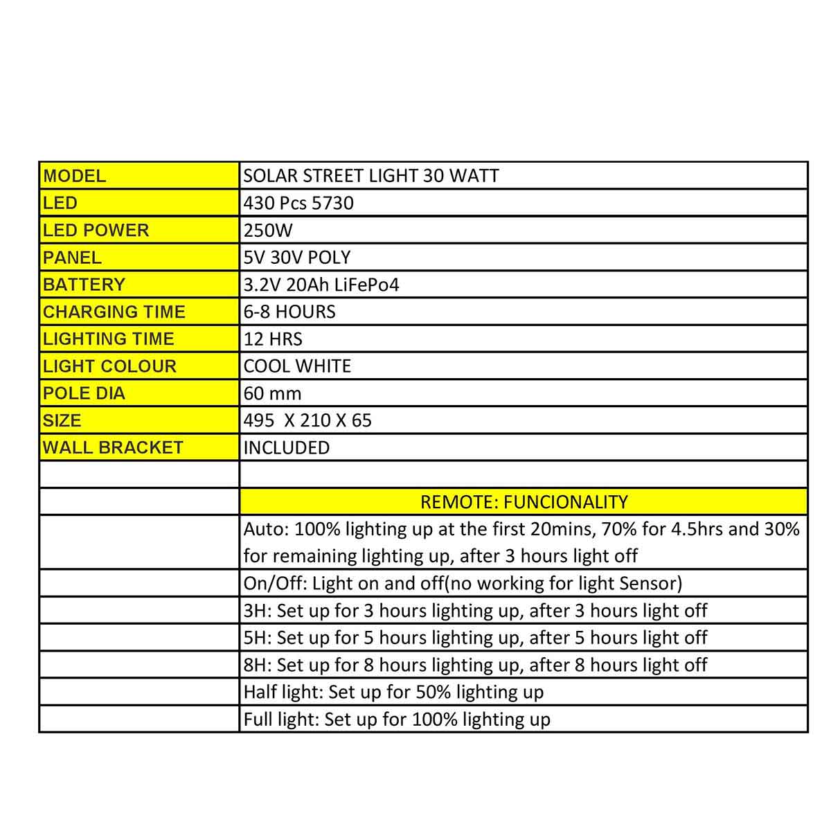 Superscape 30 watt IP65 semi integrated solar street light with wall bracket and remote.