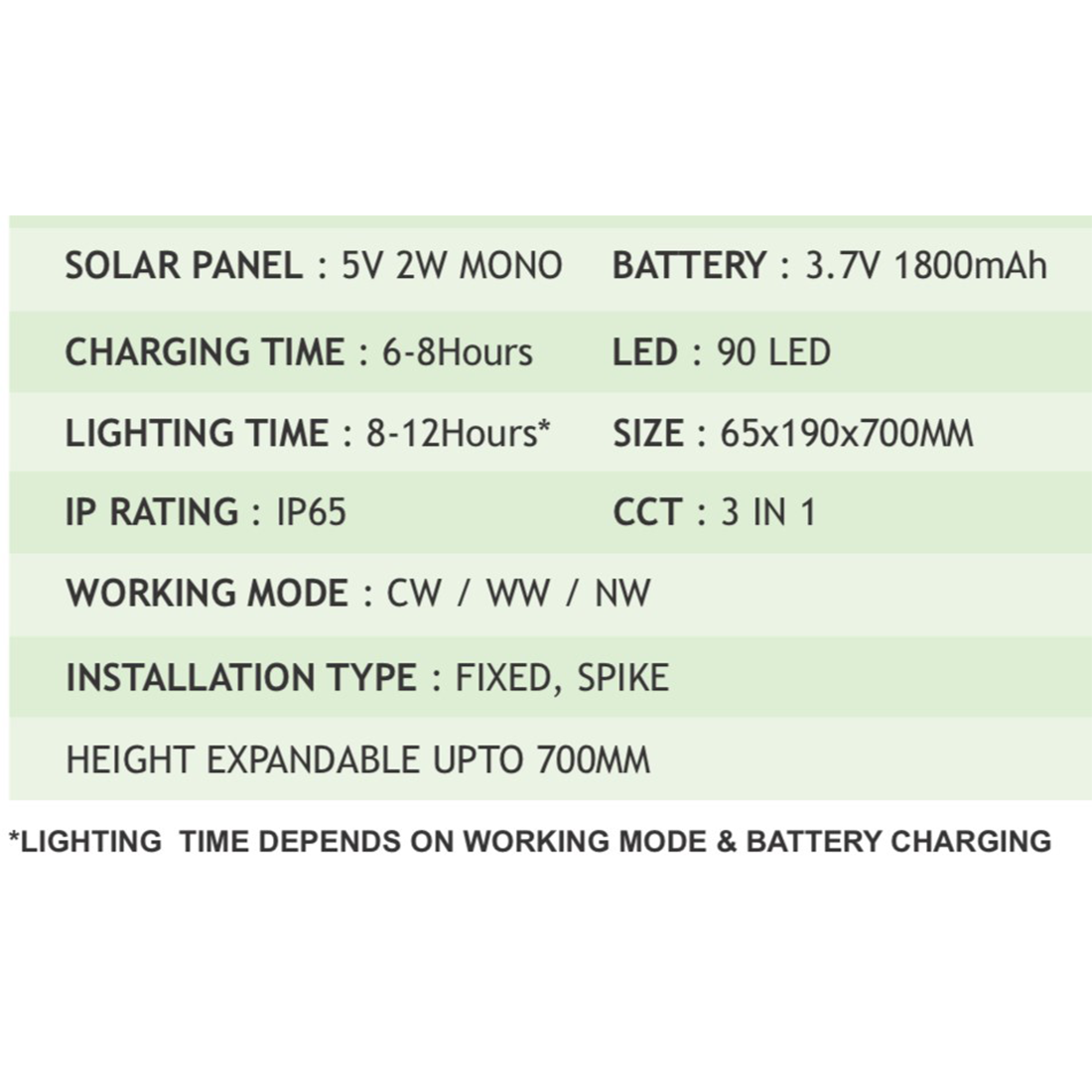 SUPERSCAPE 5 watt IP65 solar multiuse colour changing 3 in 1 bollard with adjustible height