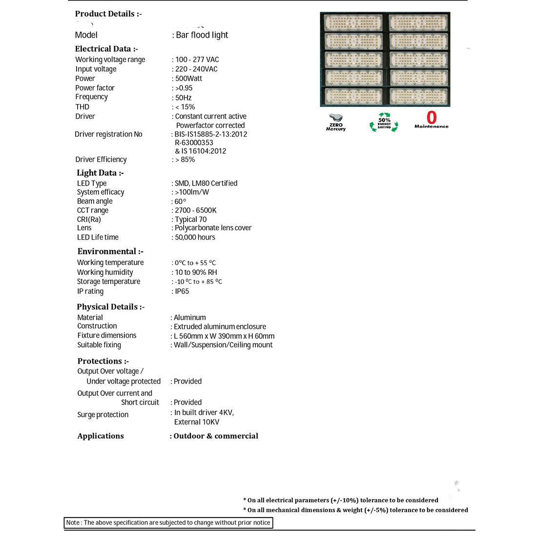 | Lamp Type | SMD LED LM80 certified |