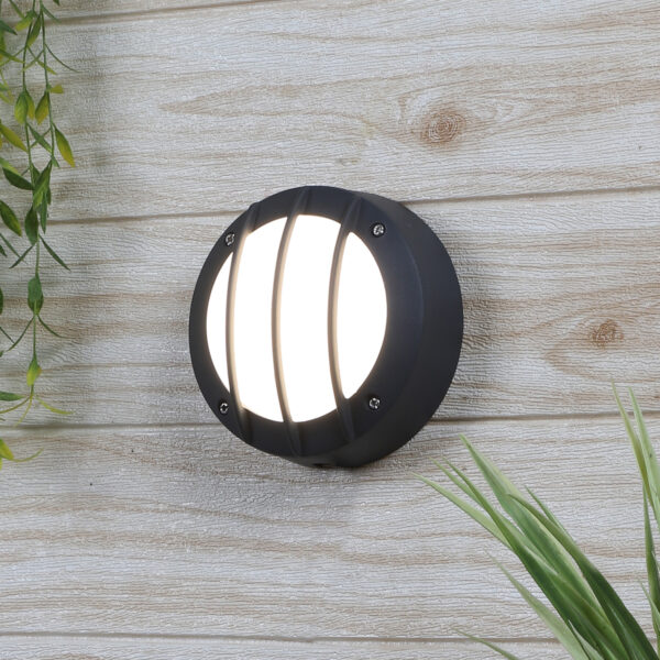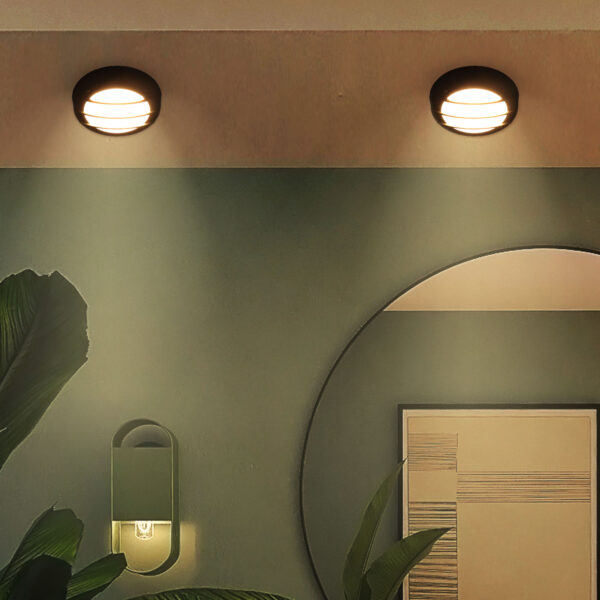 Modern aluminium die cast bulkhead light using high quality LED and driver with high success rate having less than 0.5% replacement, suitable for exterior lighting. IP65 rated, providing protection from sprayed water in any direction and making this light perfect for use outdoors can be installed in parking, balcony stair case walls, drive way, terrace walls, outdoor walls, boundary walls, open parking, stilt parking, basement parking.