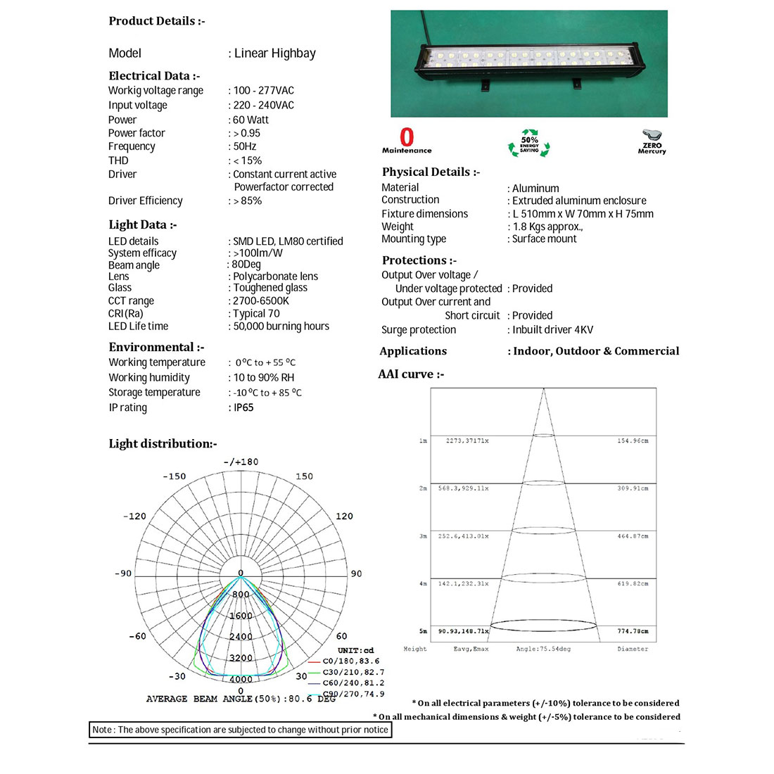 SUPERSCAPE 60 watt 20 inch Linear High bay light with glass with lens.