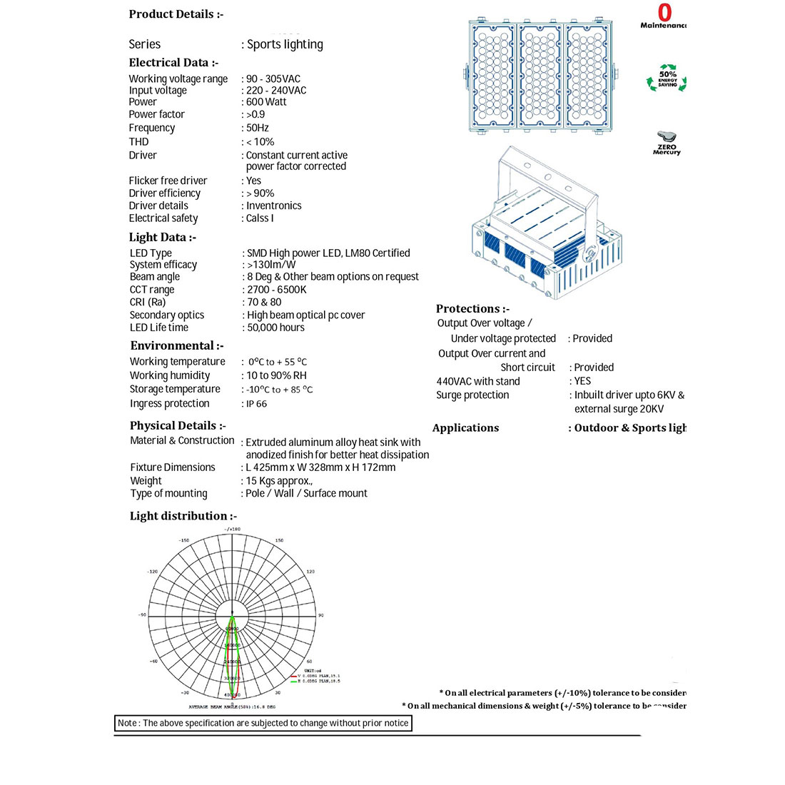 | Lamp Type | SMD HIGH POWER LED LM80 certified |