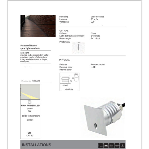 SUPERSCAPE aluminium 3 watt square LED foot light powered by high power Osram LED and high quality LED driver K1228