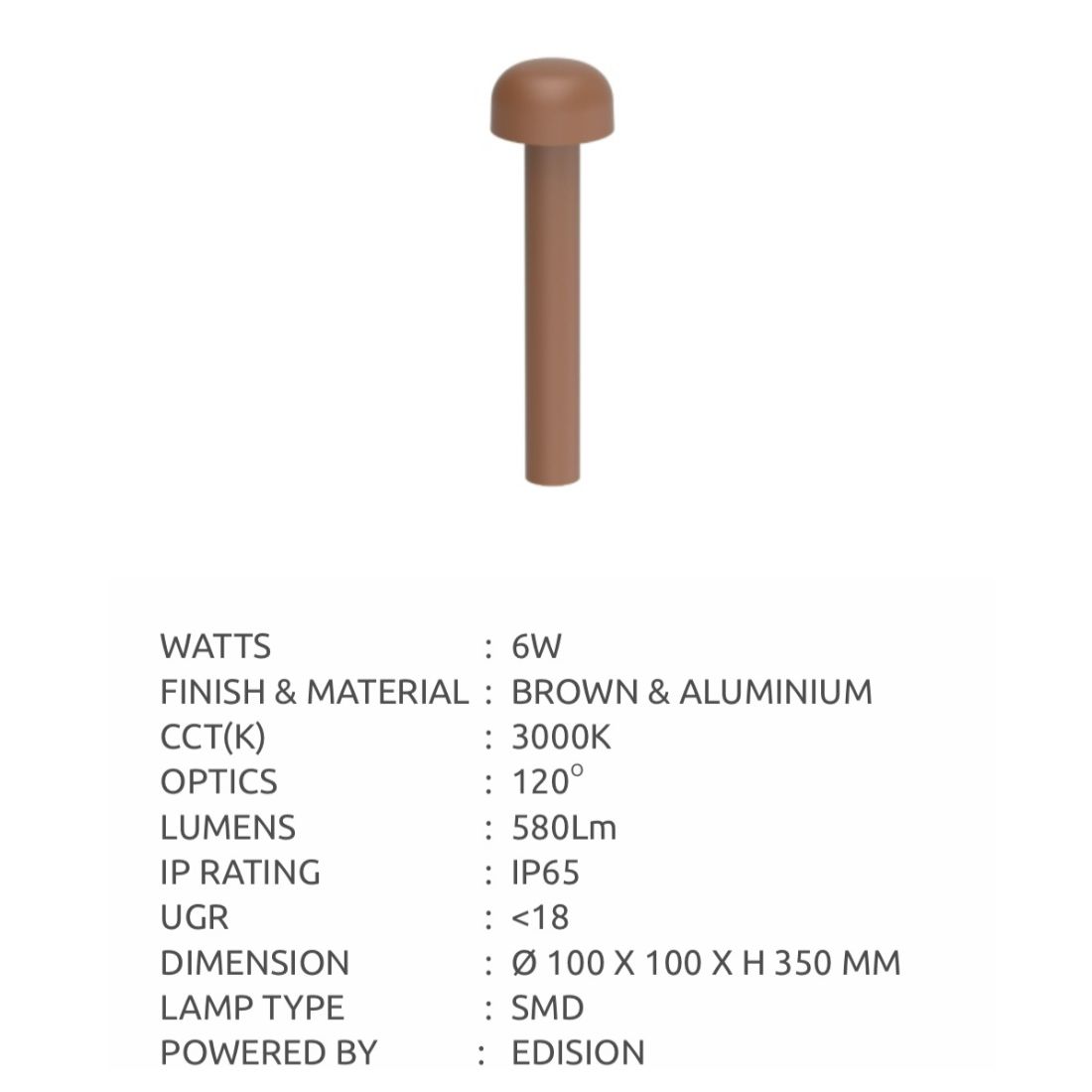 SUPERSCAPE aluminium brown finish IP65 6 watt architect choice 14 inch bollard Light with top quality LED and Driver.