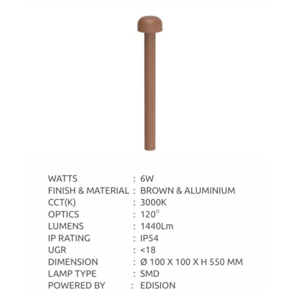 SUPERSCAPE aluminium brown finish IP65 6 watt architect choice 14 inch bollard Light with top quality LED and Driver.