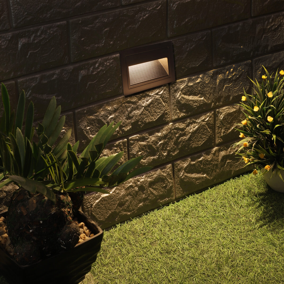 Compact, sleek aluminium die cast foot light using high quality LED and driver with high success rate having less than 0.5% replacement. Comes with a PVC casing, so that the light can easily be taken out from the wall without damaging it. It can be used in both indoor and outdoor applications such as Stair case walls, steps, passage to staircase, path way, drive way, terrace walls, outdoor walls, boundary walls, open parking, stilt parking, basement parking. Also available in 3W and 7W with codes FLC57 and FLC62. It is usually installed at 12 to 15 inches height from the floor.