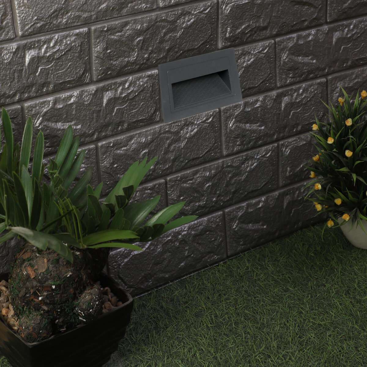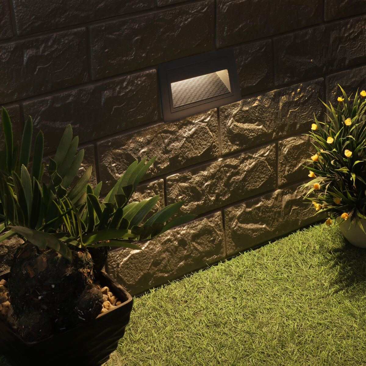 Compact, sleek aluminium die cast foot light using high quality LED and driver with high success rate having less than 0.5% replacement. Comes with a PVC casing, so that the light can easily be taken out from the wall without damaging it. It can be used in both indoor and outdoor applications such as Stair case walls, steps, passage to staircase, path way, drive way, terrace walls, outdoor walls, boundary walls, open parking, stilt parking, basement parking. It is usually installed at 12 to 15 inches height from the floor.