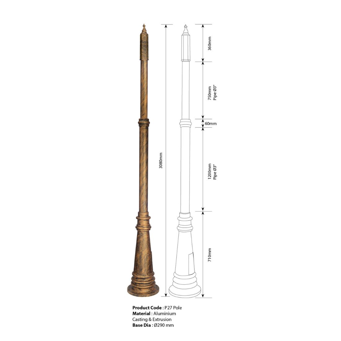 SUPERSCAPE aluminium die cast antique gold finish 3.08 meter pole.