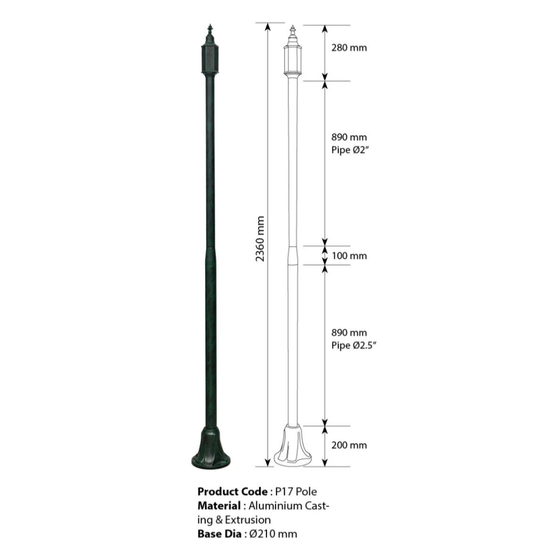 SUPERSCAPE aluminium die cast black finish 2.36 meter pole.