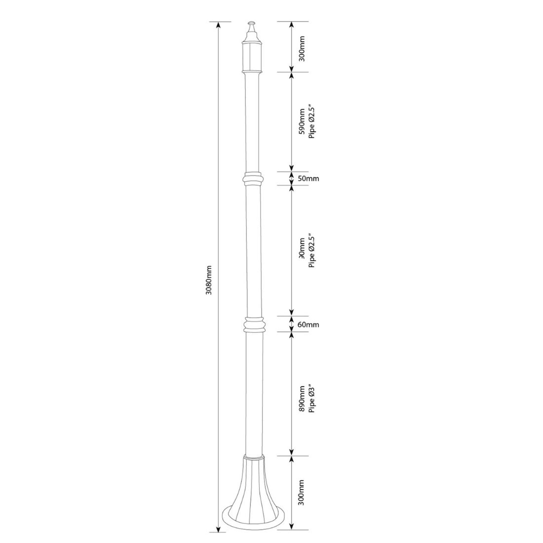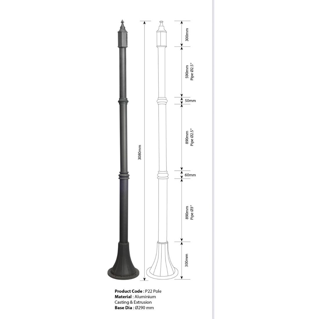 SUPERSCAPE aluminium die cast black finish 3.08 meter pole.