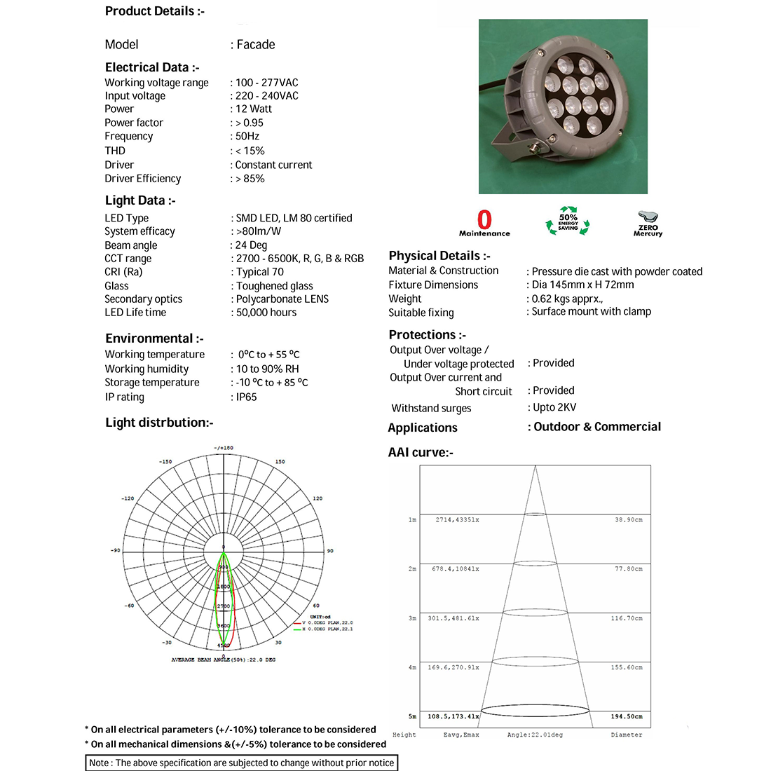 SUPERSCAPE aluminium die cast grey finish facade light 12 watt.