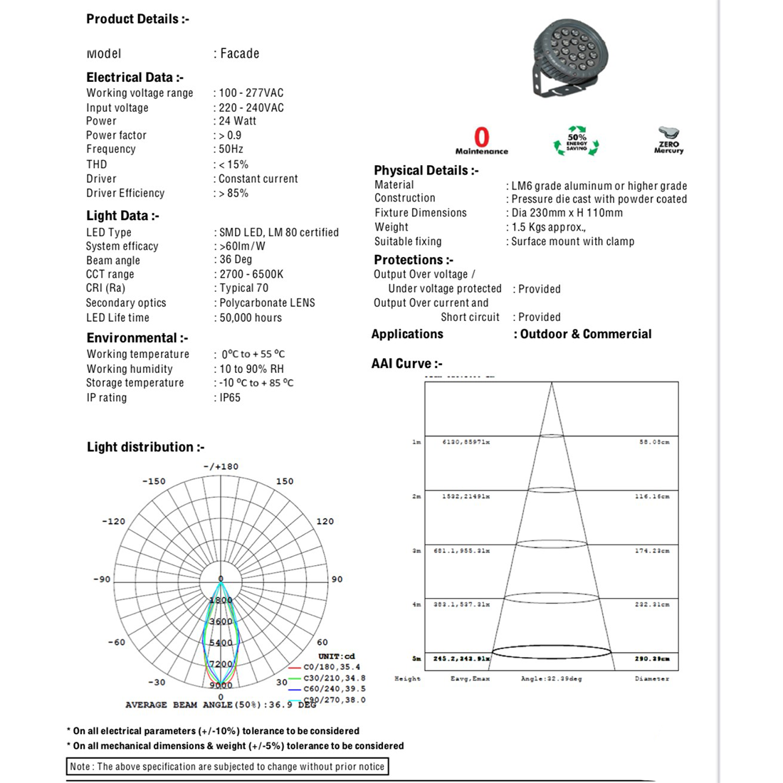 SUPERSCAPE aluminium die cast grey finish facade light 24 watt.