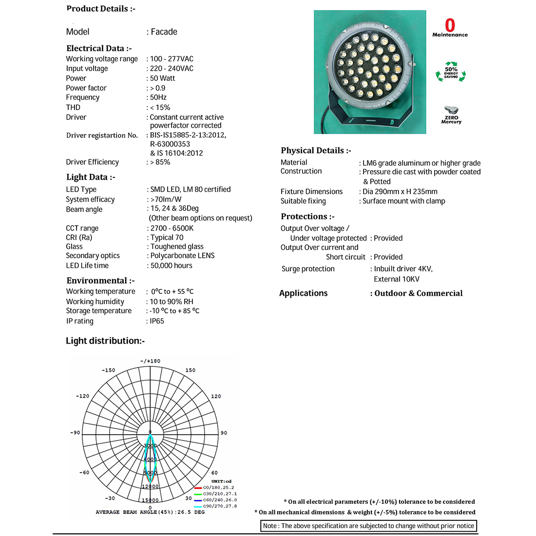 | Beam Angle | 36 degree, also available in 15 and 24 degree on demand |