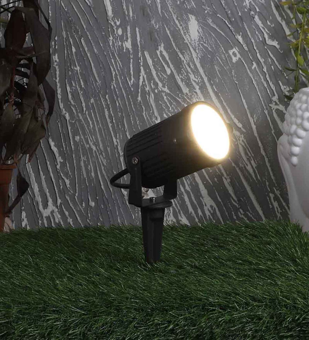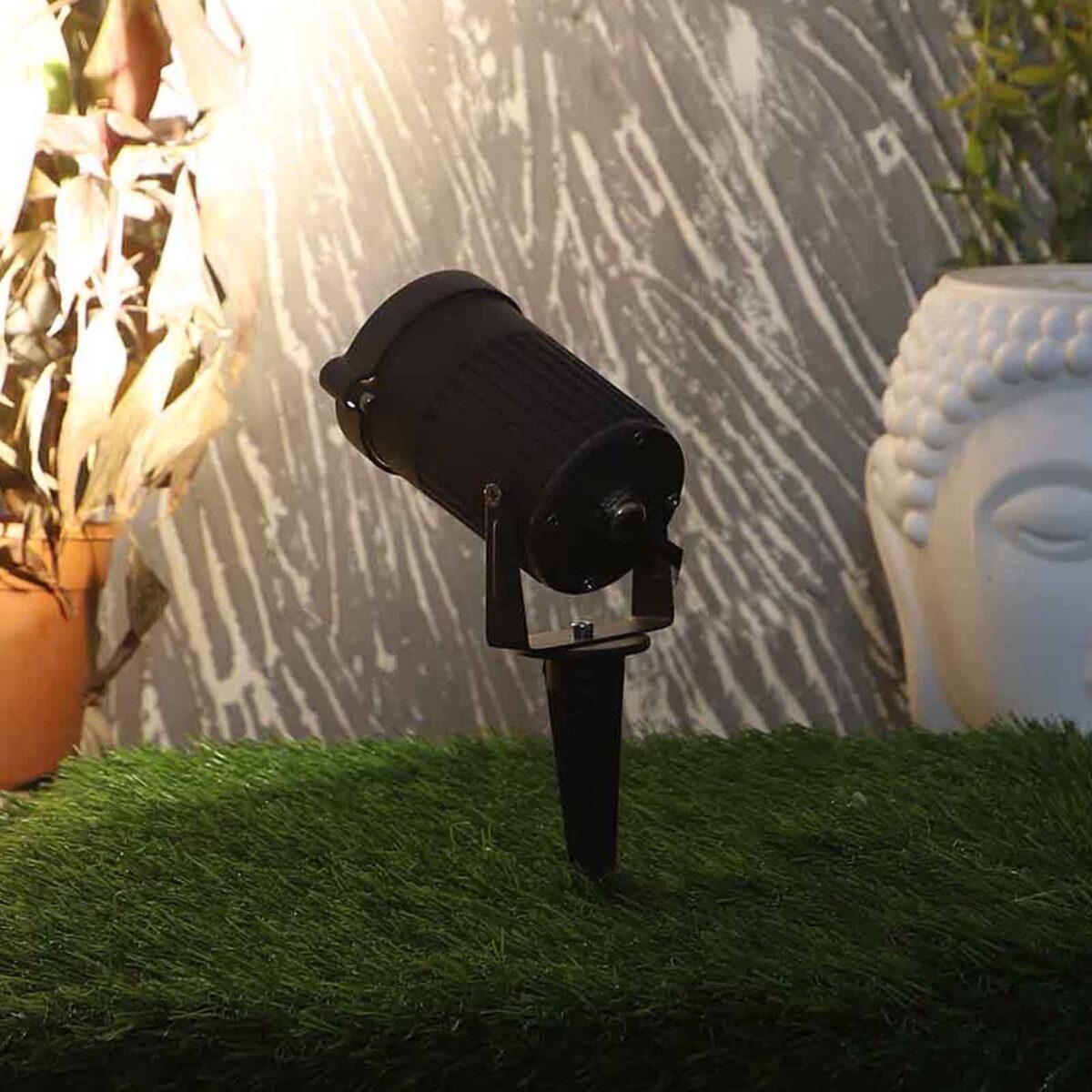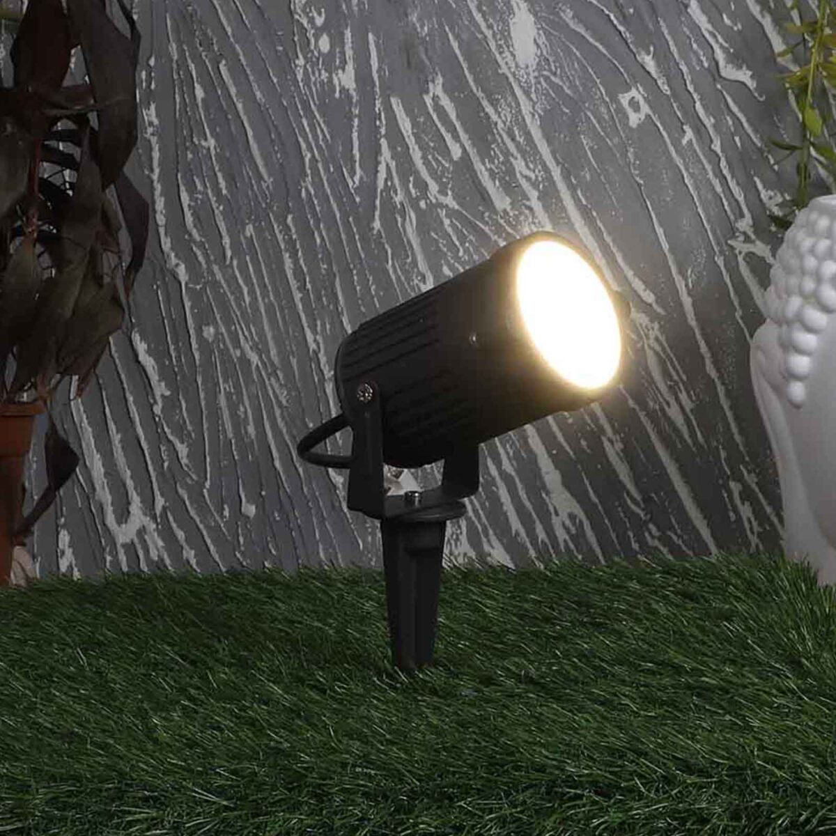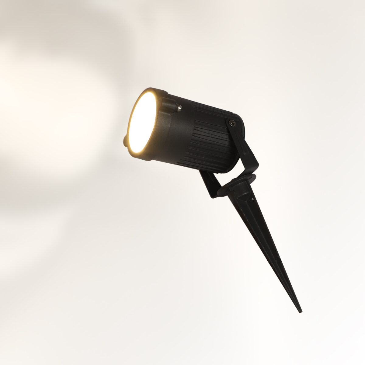 Aluminium die cast 15 watt outdoor spike light giving warm (yellow) light output, uses high quality LED and driver. IP66 rated, protection against splashed water.