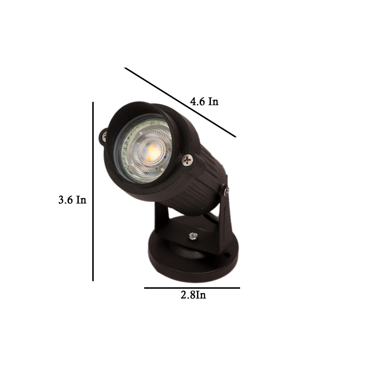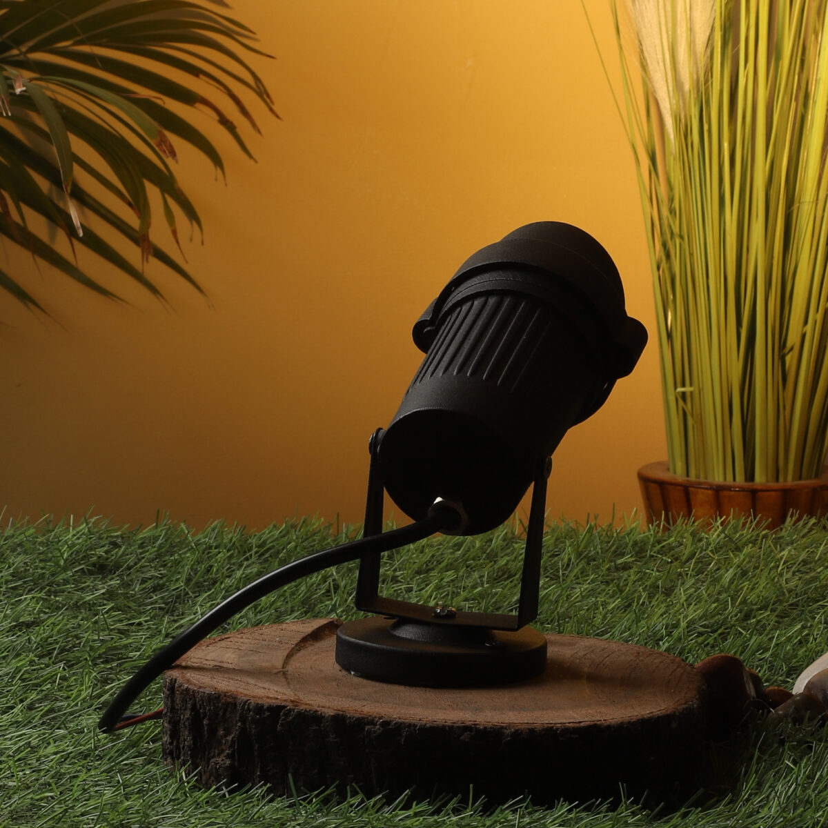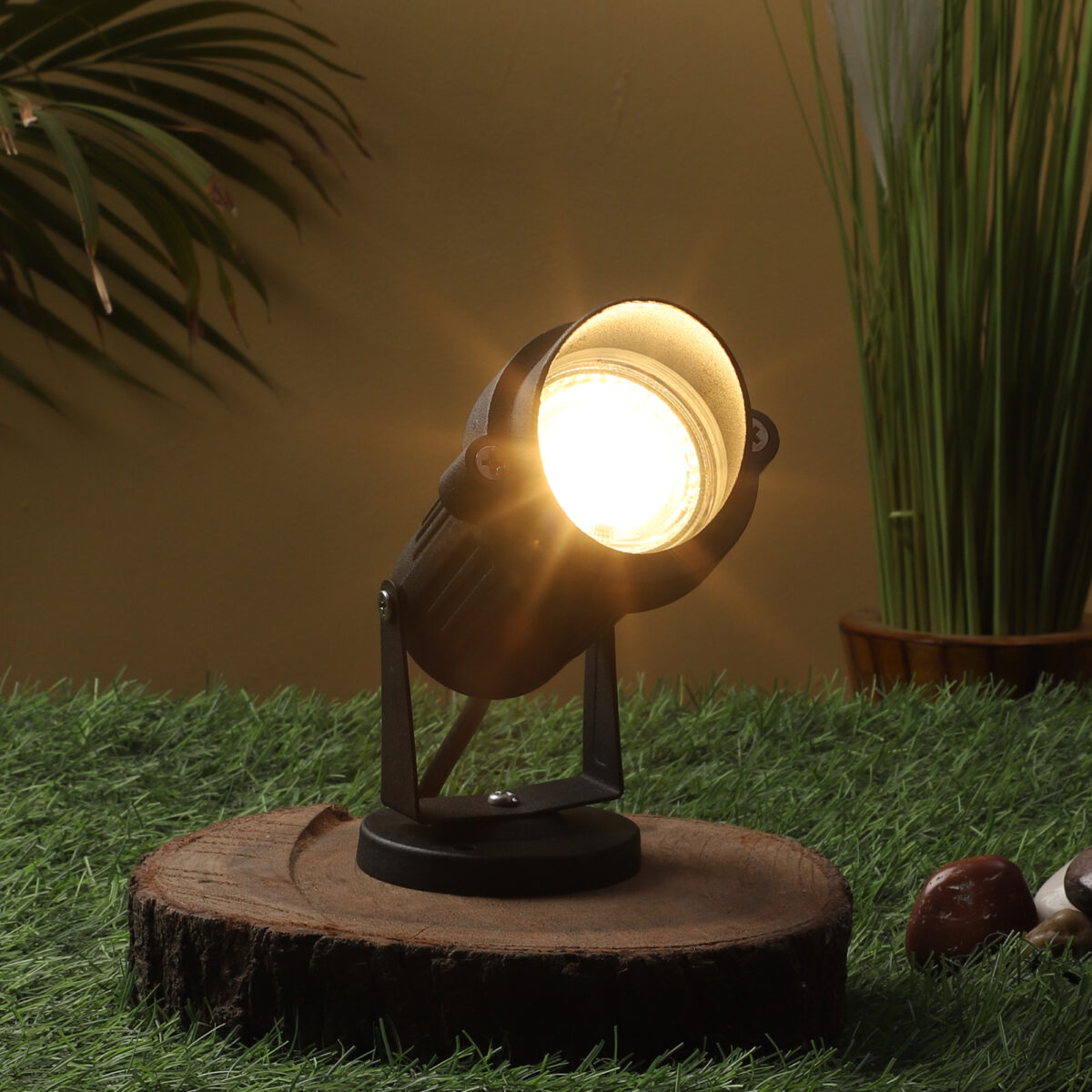 Aluminium die cast outdoor spot light It is maintenance free, one of the top selling export quality product. It uses GU10 LED lamp, which is available locally everywhere. IP 54 rated, providing protection from sprayed water in any direction and making this light perfect for use outdoors for highlighting any object such as name plate or any other designer element, in the garden for highlighting plants, flowers, fountains and water fall. Branded GU10 LED lamp of 5 watt is included.