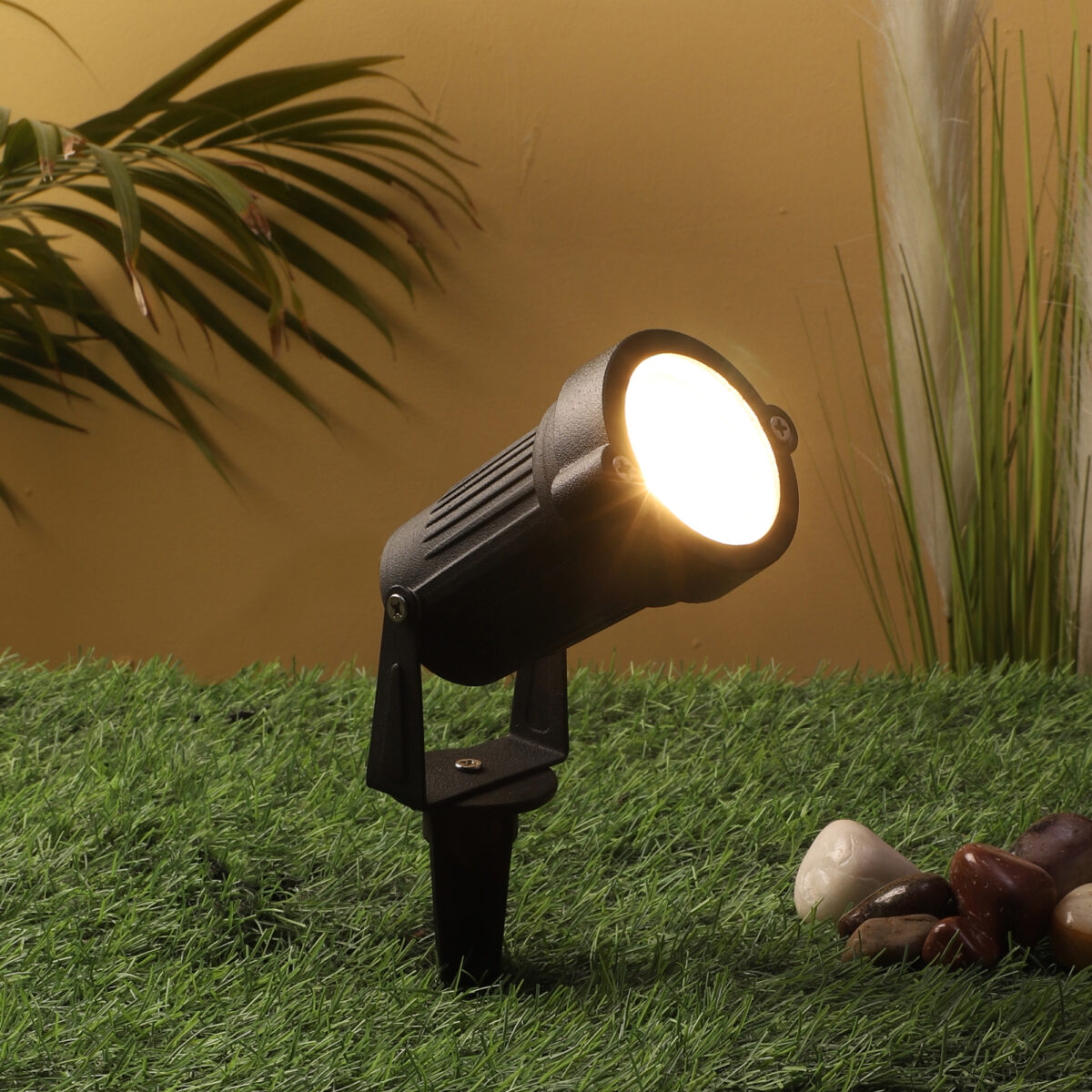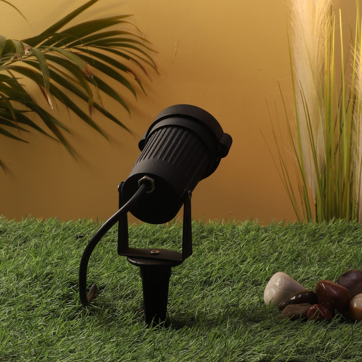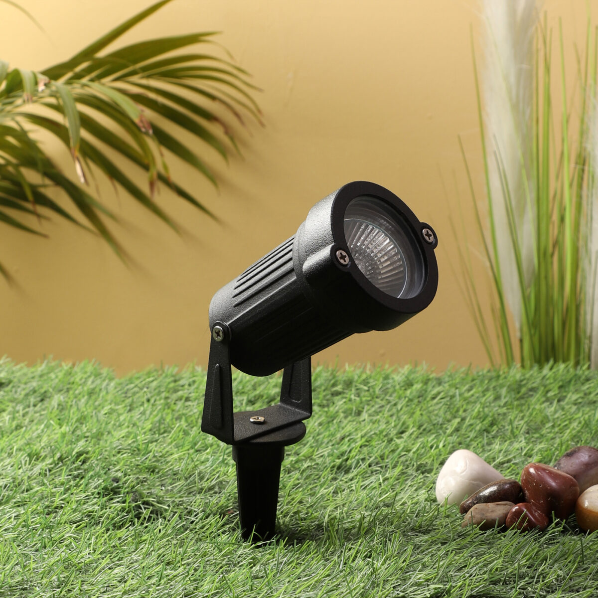 Aluminium die cast, economic, outdoor spike light It is maintenance free. It uses MR16 LED lamp which is available locally everywhere in different wattage and color temperatures. Designed to withstand the harsh conditions of the great outdoors while remaining stylish and functional. Spike lights provide the ultimate flexibility in lighting your garden as they can easily be repositioned when required to illuminate different shrubs and trees throughout the seasons. The head is adjustable allowing you to illuminate any area you desire. Easy for use in gardens small or large.IP54 rated, protection against splashed water.