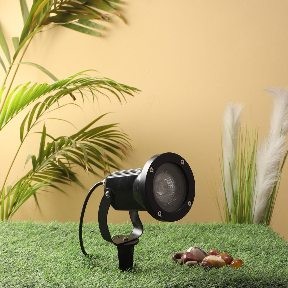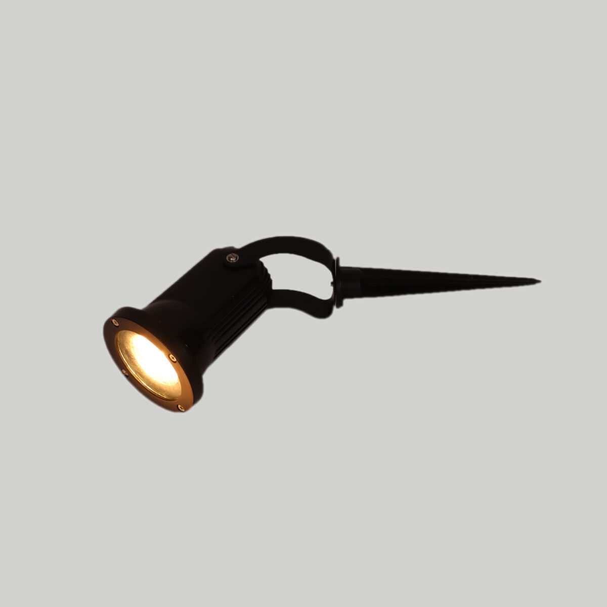 Aluminium die cast outdoor spike light It is maintenance free. It uses GU10 LED lamp, which is available locally everywhere in different wattage and colour temperatures. Designed to withstand the harsh conditions of the great outdoors while remaining stylish and functional. Spike lights provide the ultimate flexibility in lighting your garden as they can easily be re positioned when required to illuminate different shrubs and trees throughout the seasons. The head is adjustable allowing you to illuminate any area you desire. Easy for use in gardens small or large. IP 54 rated, protection against splashed water. LAMP NOT INCLUDED.
